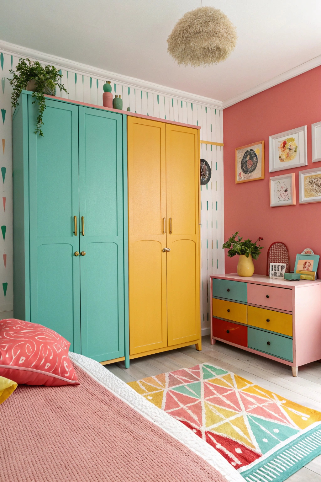 PinColorful painted cupboards can transform your bedroom into a vibrant oasis while adding a touch of your personality. Choose bold hues like teal, mustard, or coral to make a statement, or opt for pastel shades for a softer look. You can also mix and match colors for a playful feel. Don't forget to accessorize with vibrant knobs or handles to enhance the charm!