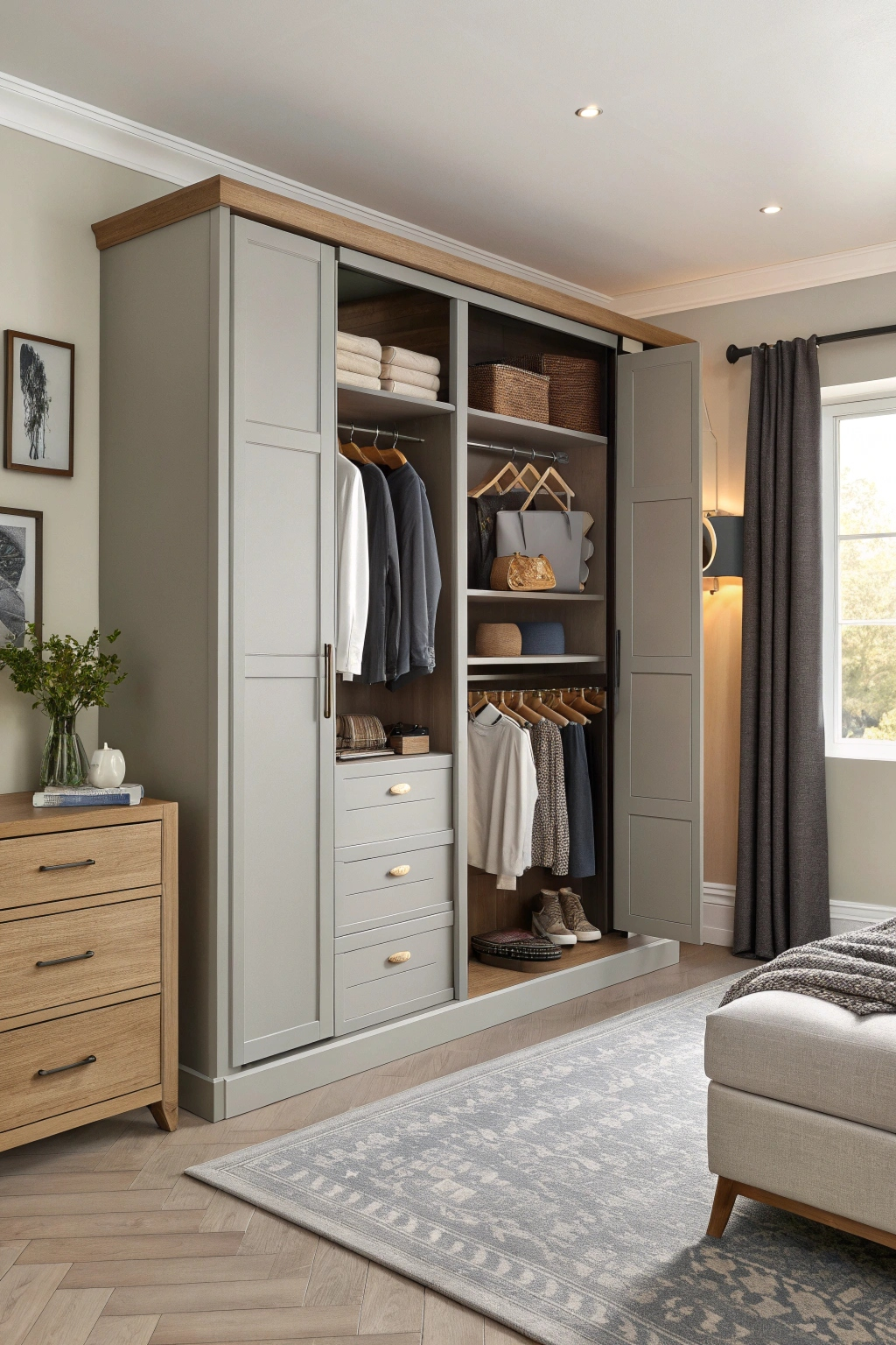 - Versatile Storage: Mix shelves, hanging rods, and bins for ideal organization.