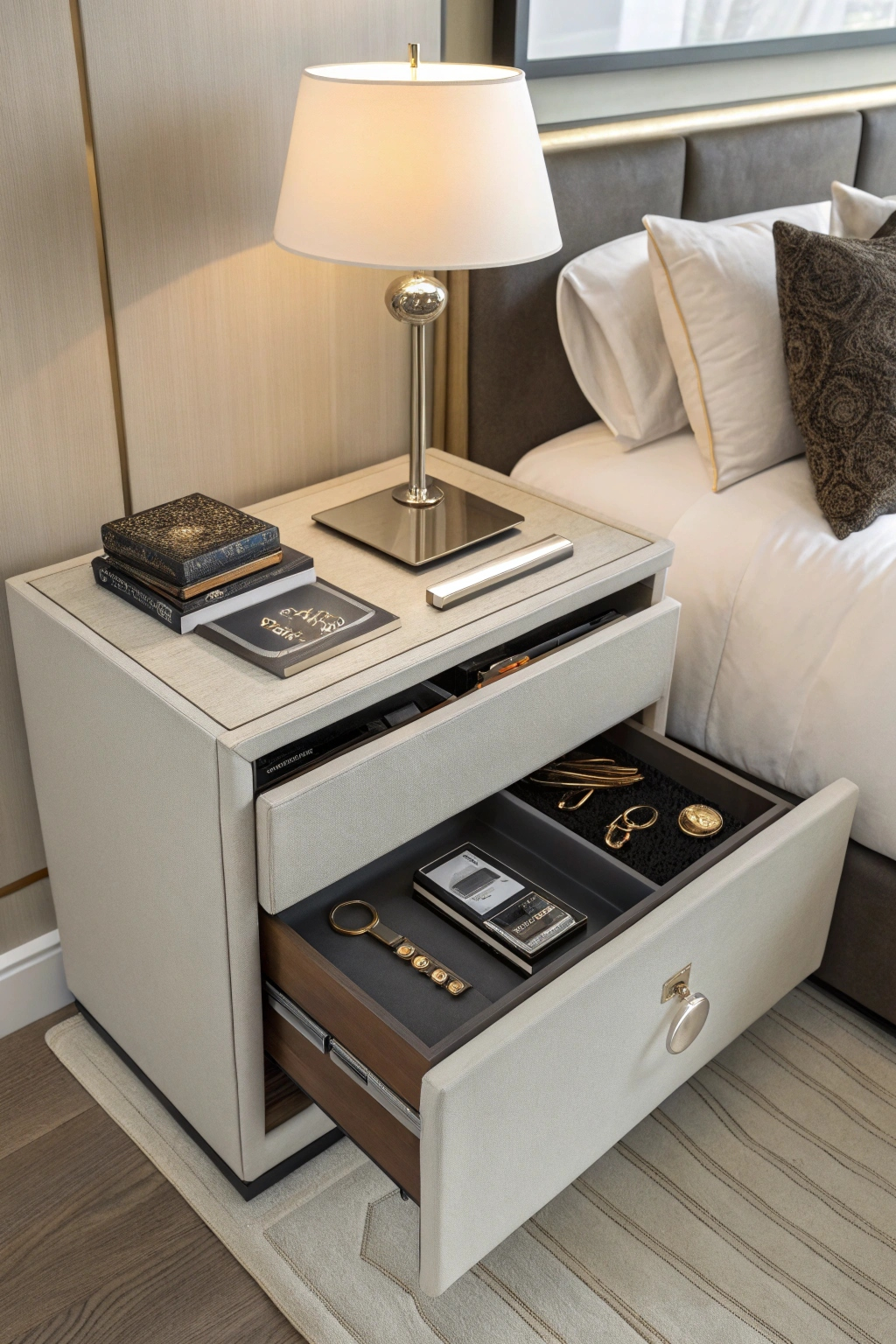 PinImagine slipping your valuables into a nightstand that keeps them hidden from sight yet easily accessible. Hidden compartment nightstands add a layer of functionality and security to your bedroom. You'll appreciate having a designated space for essentials without cluttering your surface. Whether it's jewelry, personal documents, or gadgets, these nightstands offer stylish concealment, allowing for a tidy, organized nightstand that looks great.