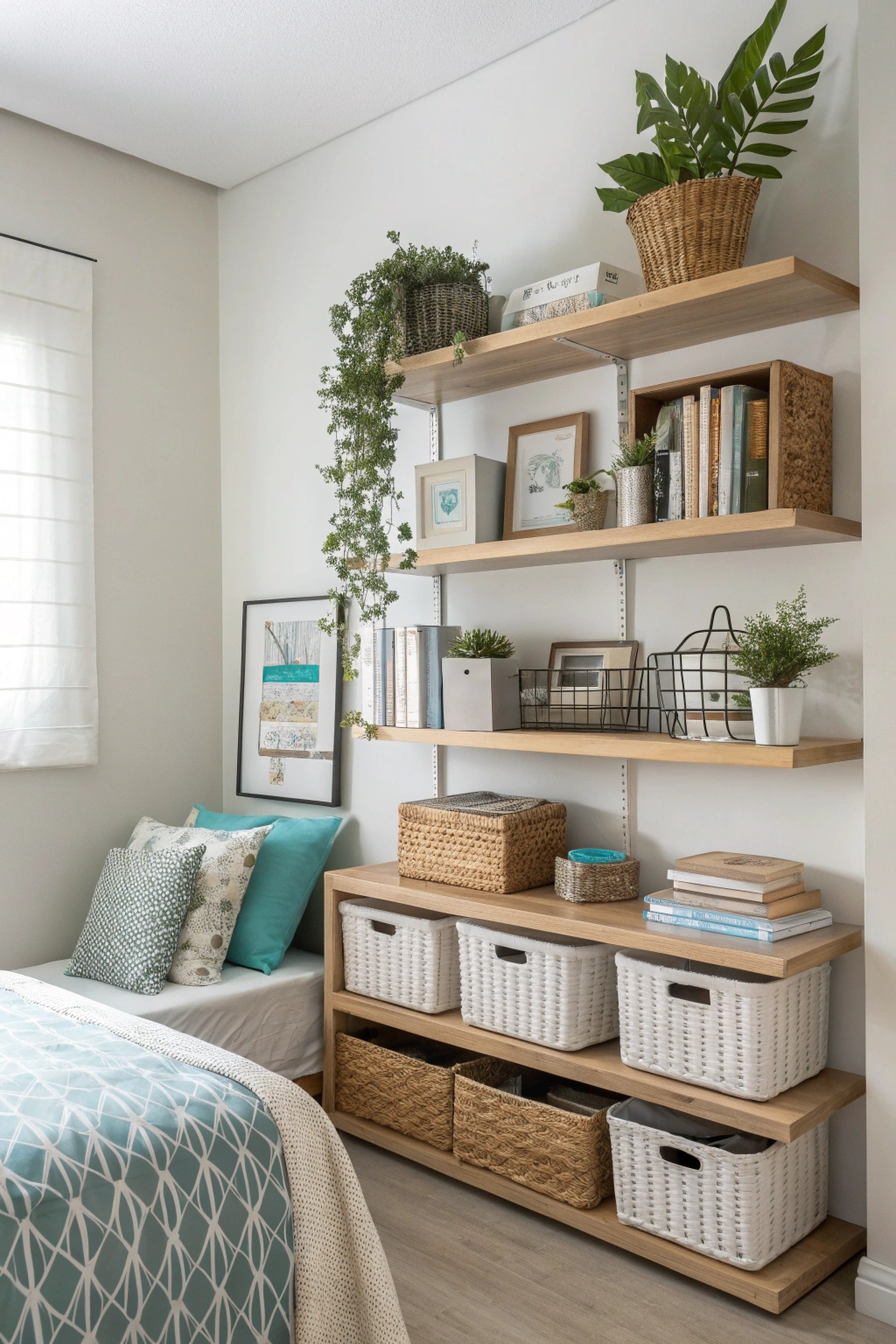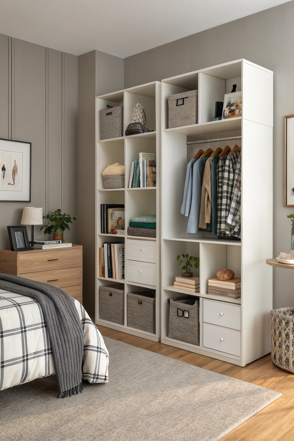 PinModular cube units are a fantastic way to customize your bedroom storage while maintaining a sleek design. You can mix and match the cubes to fit your space and style, stacking them or placing them side-by-side. Fill these units with books, clothes, or decorative items, keeping your room organized and visually appealing. Their versatility makes them perfect for any bedroom layout.