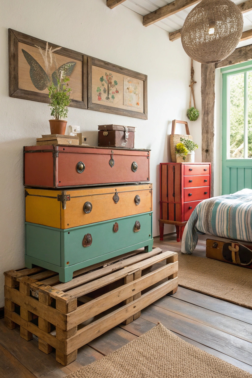 - Painted Dressers: Give old dressers a fresh coat of bold paint.