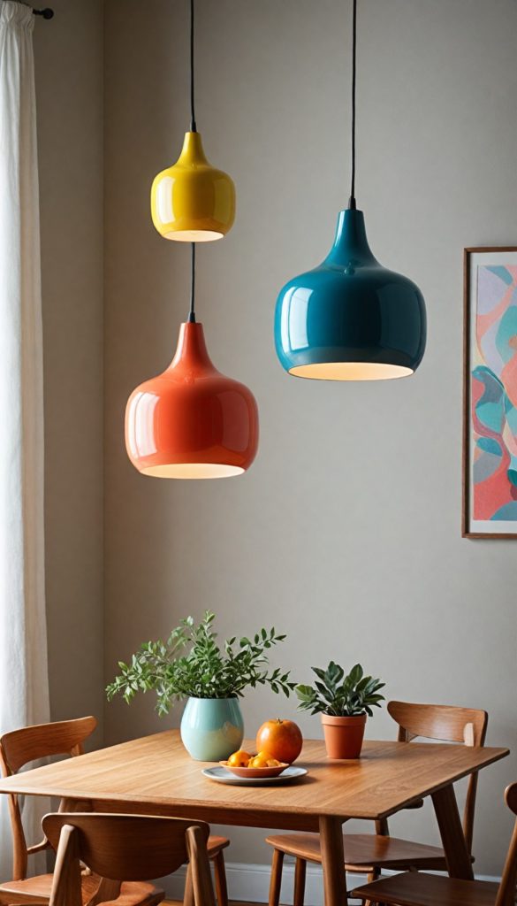 PinIlluminate your home with chic pendant lights inspired by the 60s. These lights often feature sleek, geometric designs and a mix of materials. Hang them over your dining table or in your living room for a stylish touch.