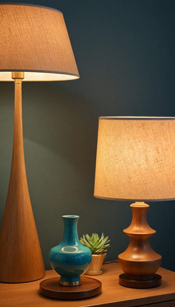 PinComplete your lighting setup with unique 60s table lamps. Choose designs with clean lines and unique shapes. A lamp with a wooden base and a fabric shade will add warmth to any room.