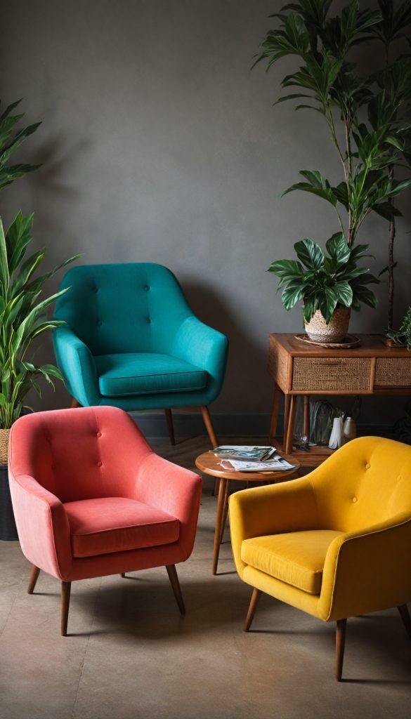 Pin60s furniture often features a mix of plastic and wood. Look for pieces with bright plastic finishes and natural wood accents. This combination adds warmth and a touch of futuristic design to your home.