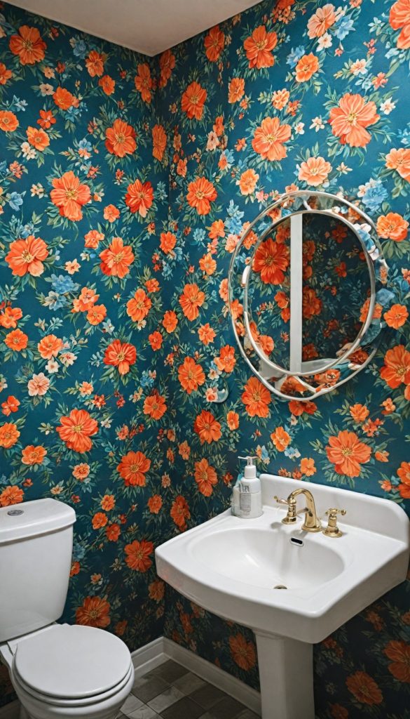 PinFloral wallpaper was a common sight in 70s bathrooms. This vibrant and cheerful design can add a touch of nostalgia and charm to your bathroom space.
