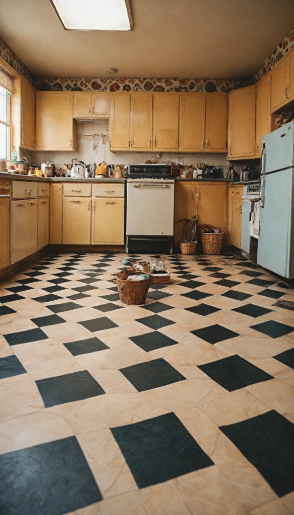 PinCheckerboard floors were a popular choice in 70s kitchens. This bold pattern can add a fun and vintage touch to your cooking space.