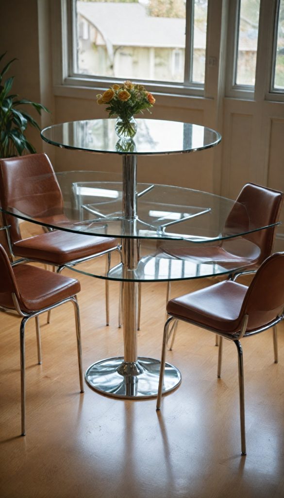 PinGlass and chrome dining tables were a staple in the 70s. These tables have a sleek, modern look that still feels fresh today. Pair them with bold, patterned chairs to complete the retro look.