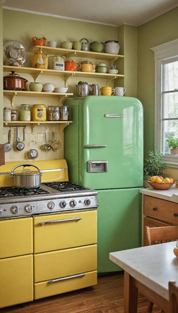 PinAdd a touch of nostalgia to your kitchen with retro appliances. Think brightly colored refrigerators, toasters, and mixers in shades like avocado green and harvest gold.