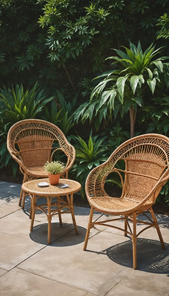 PinWicker furniture was widely used for outdoor spaces in the 70s. These chairs are not only stylish but also durable and perfect for relaxing on a sunny day.