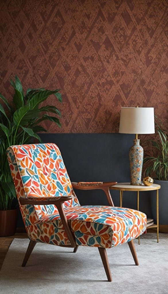 PinStatement armchairs with bold patterns and colors can add a dramatic flair to your living room. Opt for chairs with unique shapes and vibrant upholstery to capture the essence of 70s design.