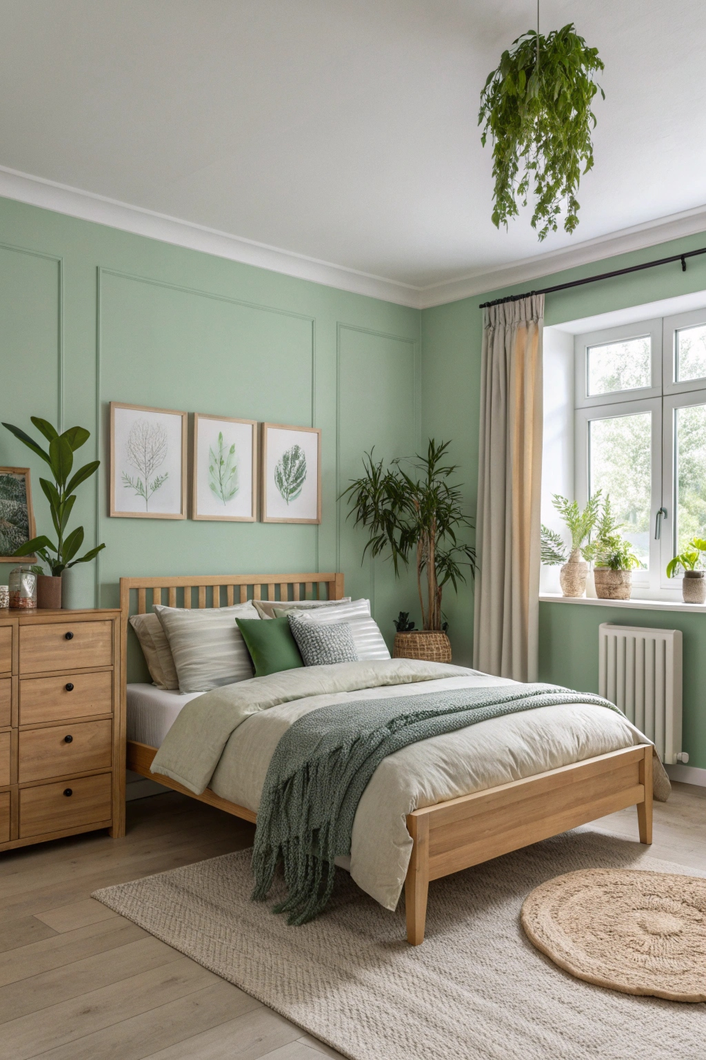 PinSage green brings a sense of calm and serenity to your bedroom, making it an ideal choice for relaxation. This soft, muted hue blends beautifully with natural materials, creating a harmonious atmosphere. To enhance its soothing quality, consider incorporating light wood furniture and plush textiles. Accentuate the space with plants to breathe life into your room while maintaining that tranquil vibe.