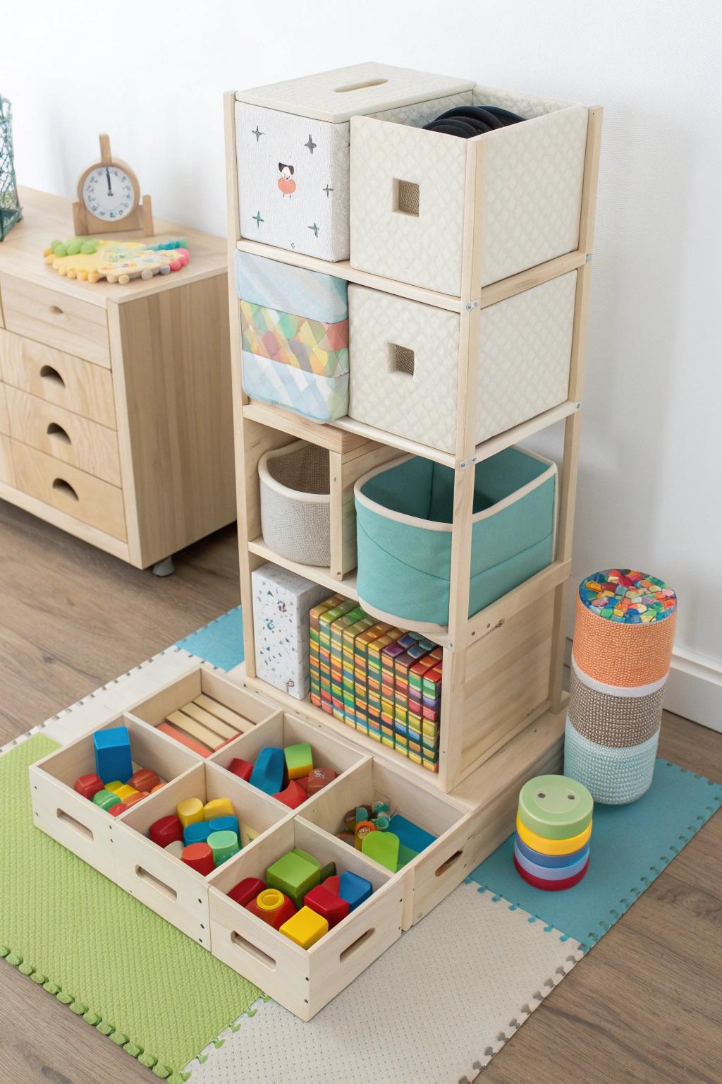 - Use them for toy storage with fabric bins.