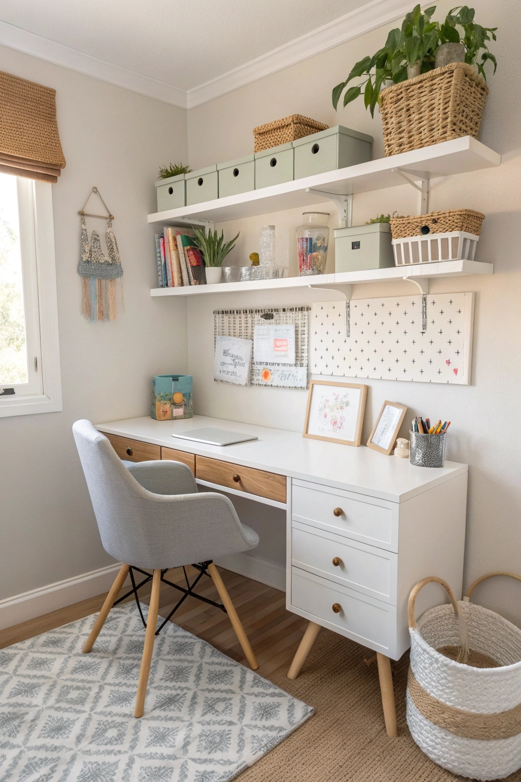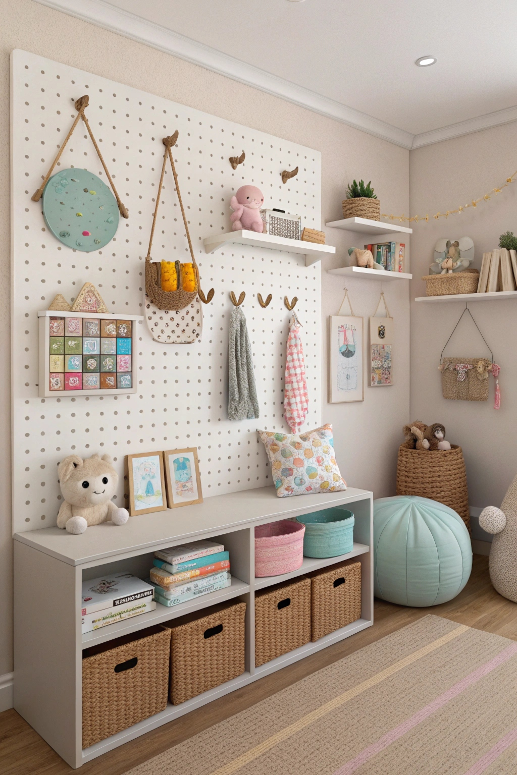 Utilizing pegboards keeps everything neat and adds a personalized touch!