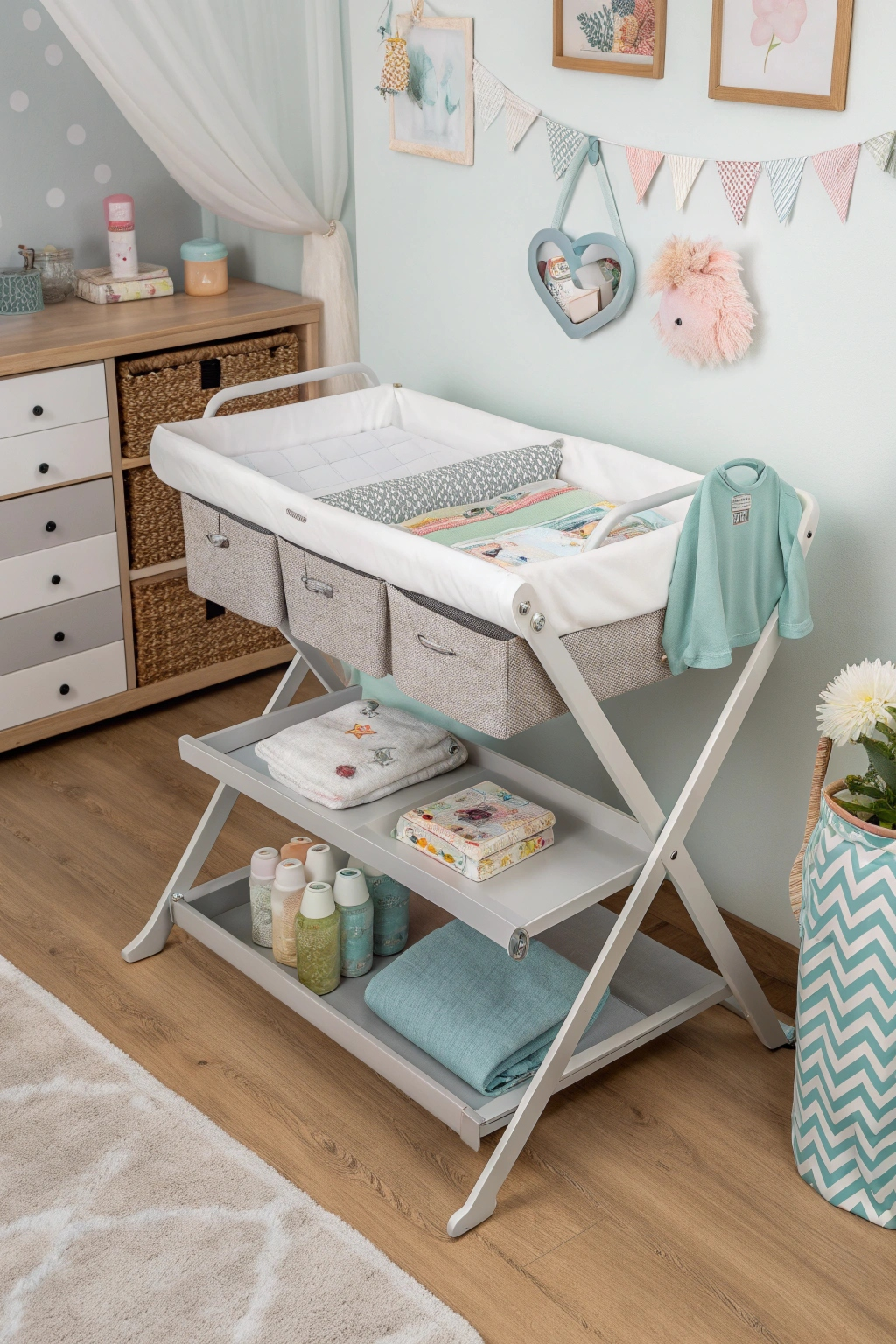 PinIn small nurseries where space is at a premium, incorporating folding changing tables can be a smart solution for both functionality and versatility. These tables easily tuck away when not in use, freeing up valuable floor space. Look for models that offer additional storage underneath for diapers and wipes, helping you stay organized while creating a stylish and practical changing area.