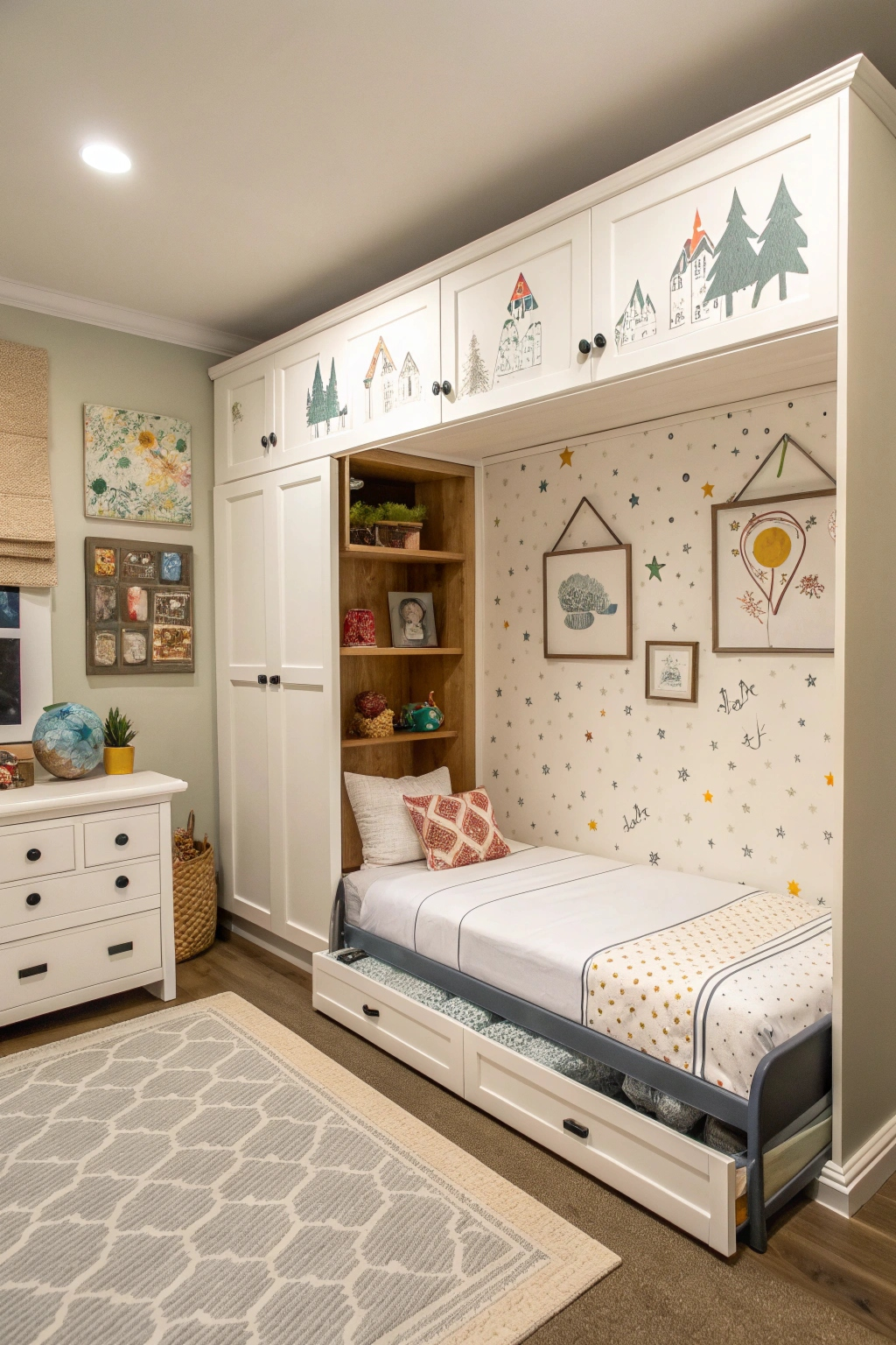 - Use wall art or decals on the bed's facade.