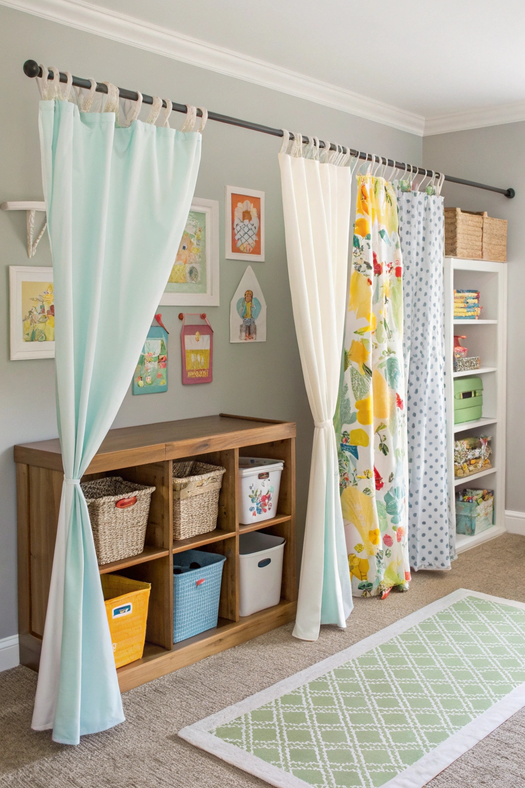 - Create distinct zones with fabric dividers.