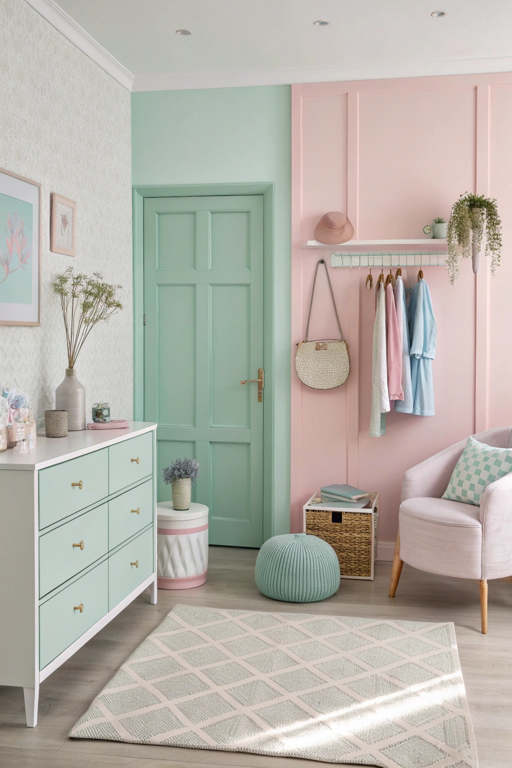- Integrated storage: Use stylish containers to keep the space organized.