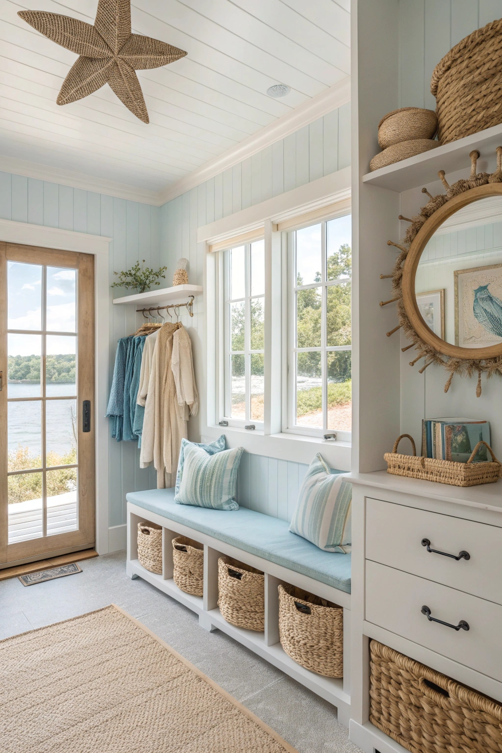 - Nautical accessories such as seashells and driftwood