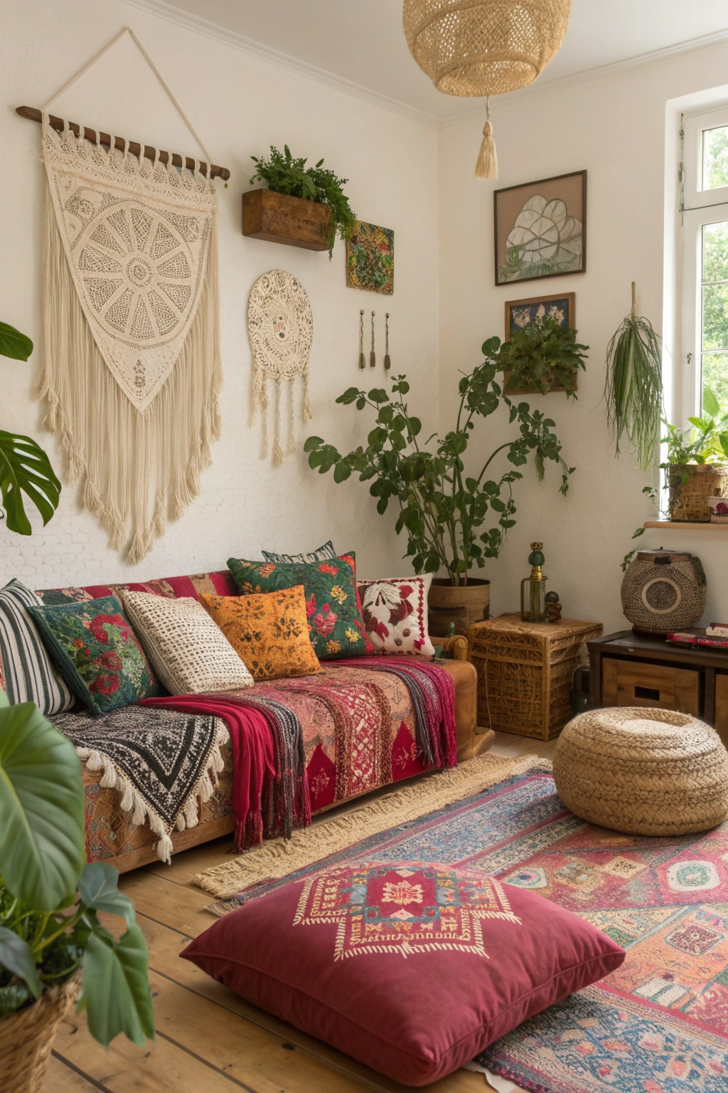 PinIf you're drawn to a relaxed and free-spirited style, embracing Boho chic vibes in your living room can transform the space into a vibrant sanctuary. Layer rich textures and patterns, mixing ethnic prints with cozy textiles. Incorporate colorful throw pillows, macramé wall hangings, and lush greenery. Don't forget to add unique vintage pieces that showcase your personality and create an inviting atmosphere.