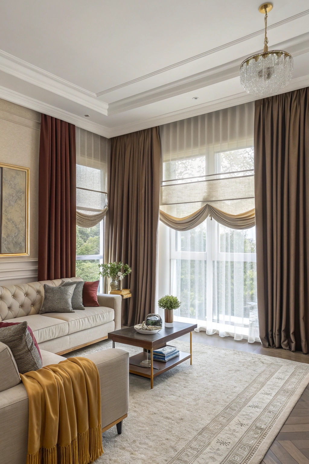 PinWhen it comes to adding sophistication to your living room, elegant window treatments can make all the difference. Consider floor-to-ceiling drapes in rich fabrics for a dramatic look or sheer curtains to let in natural light while maintaining privacy. Roman shades offer a sleek, tailored appearance. Choosing the right window treatments can enhance your room's overall style and create a cozy yet refined atmosphere.