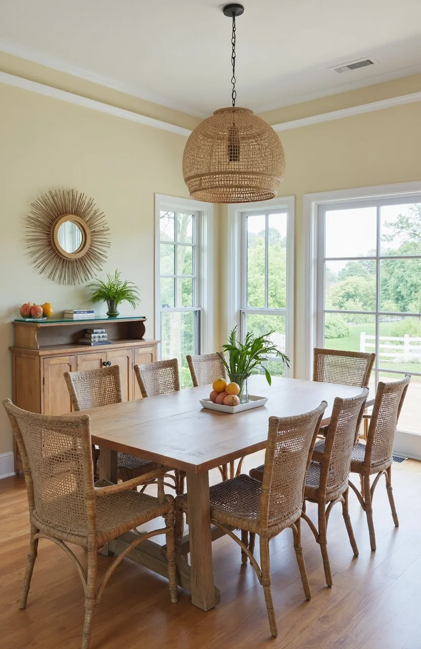 PinAs you design your dining room, incorporating nature-inspired elements can create a calming and inviting atmosphere that enhances your dining experience. Use natural materials like wood and stone for furniture and decor. Add greenery with plants or a small herb garden. Utilize colors found in nature, such as earthy tones, to connect your space with the outdoors and promote relaxation during meals.