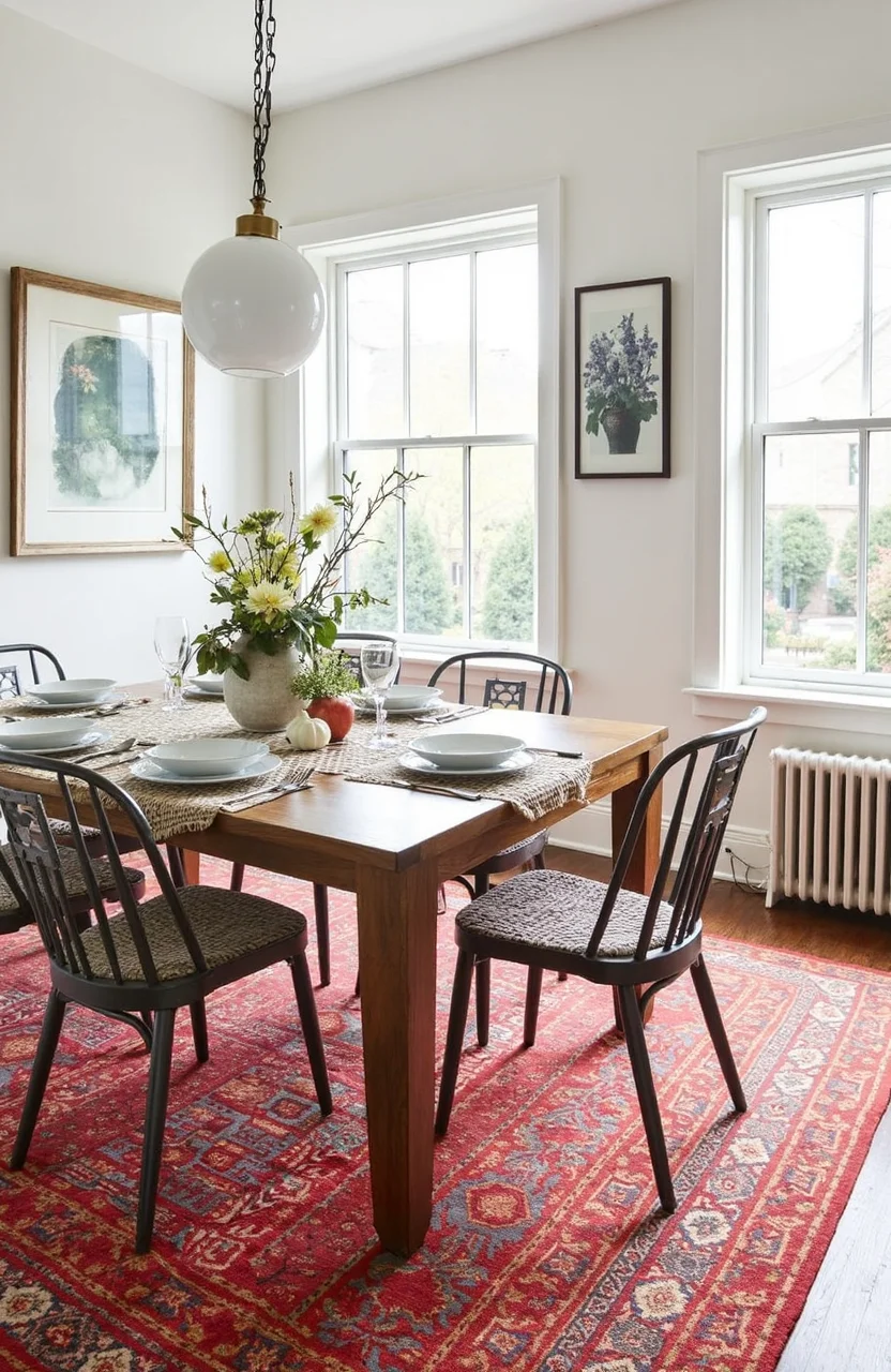 PinA bold statement rug can transform your dining room into a vibrant focal point that ties the space together. When choosing the perfect rug, consider these three elements: