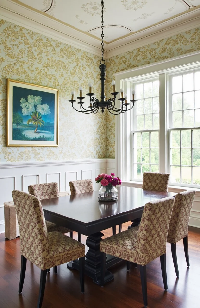 PinBold prints and patterns can serve as a vibrant backdrop for architectural details that enhance the overall character of your dining room. Focus on these elements to create a striking space: