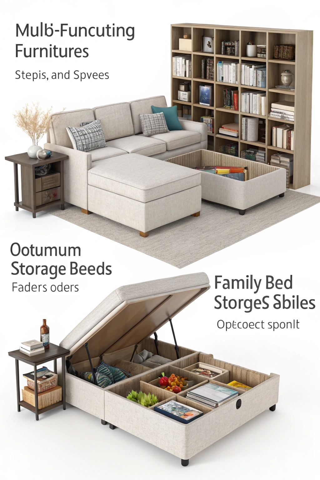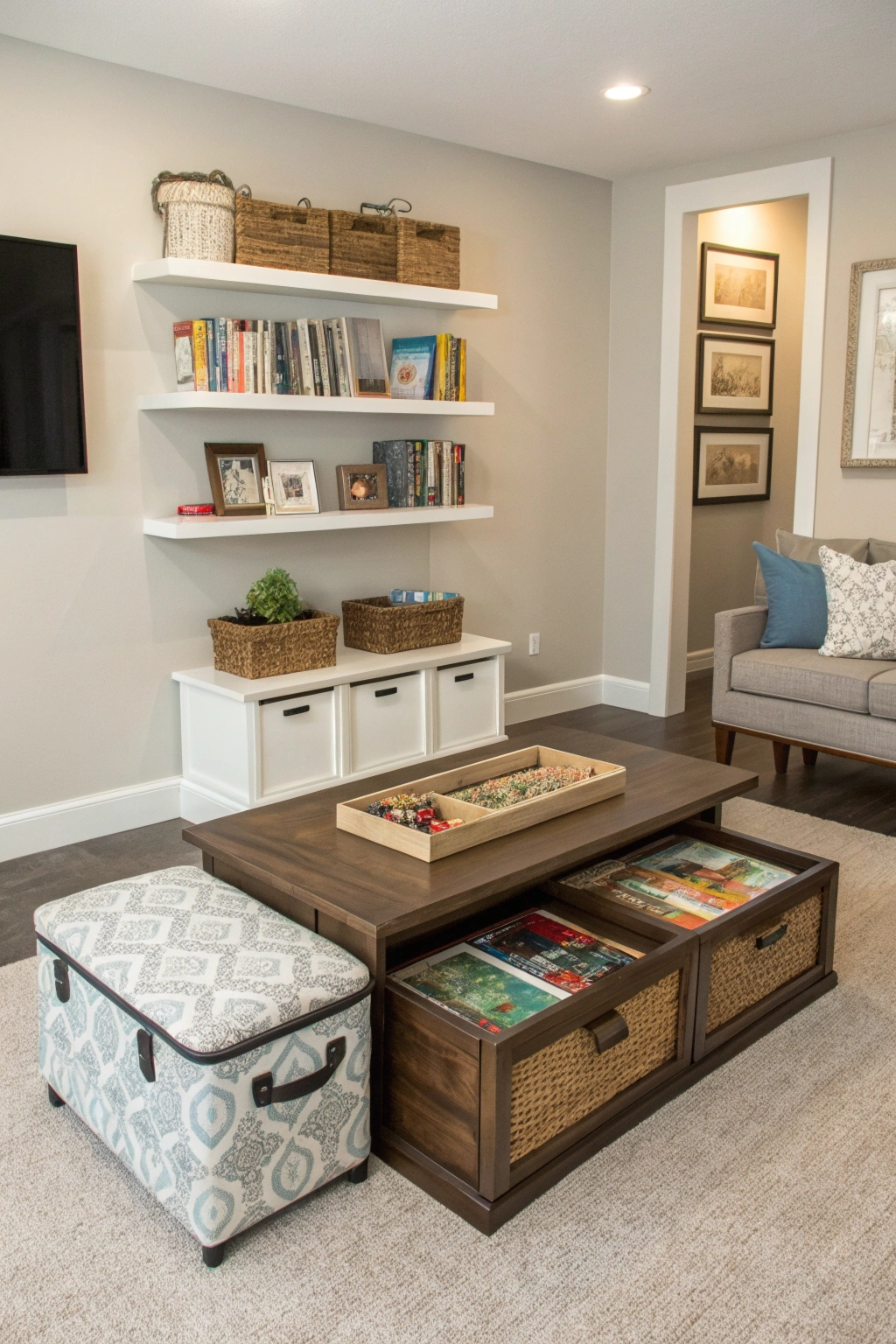 - Include multi-functional furniture like storage ottomans.
