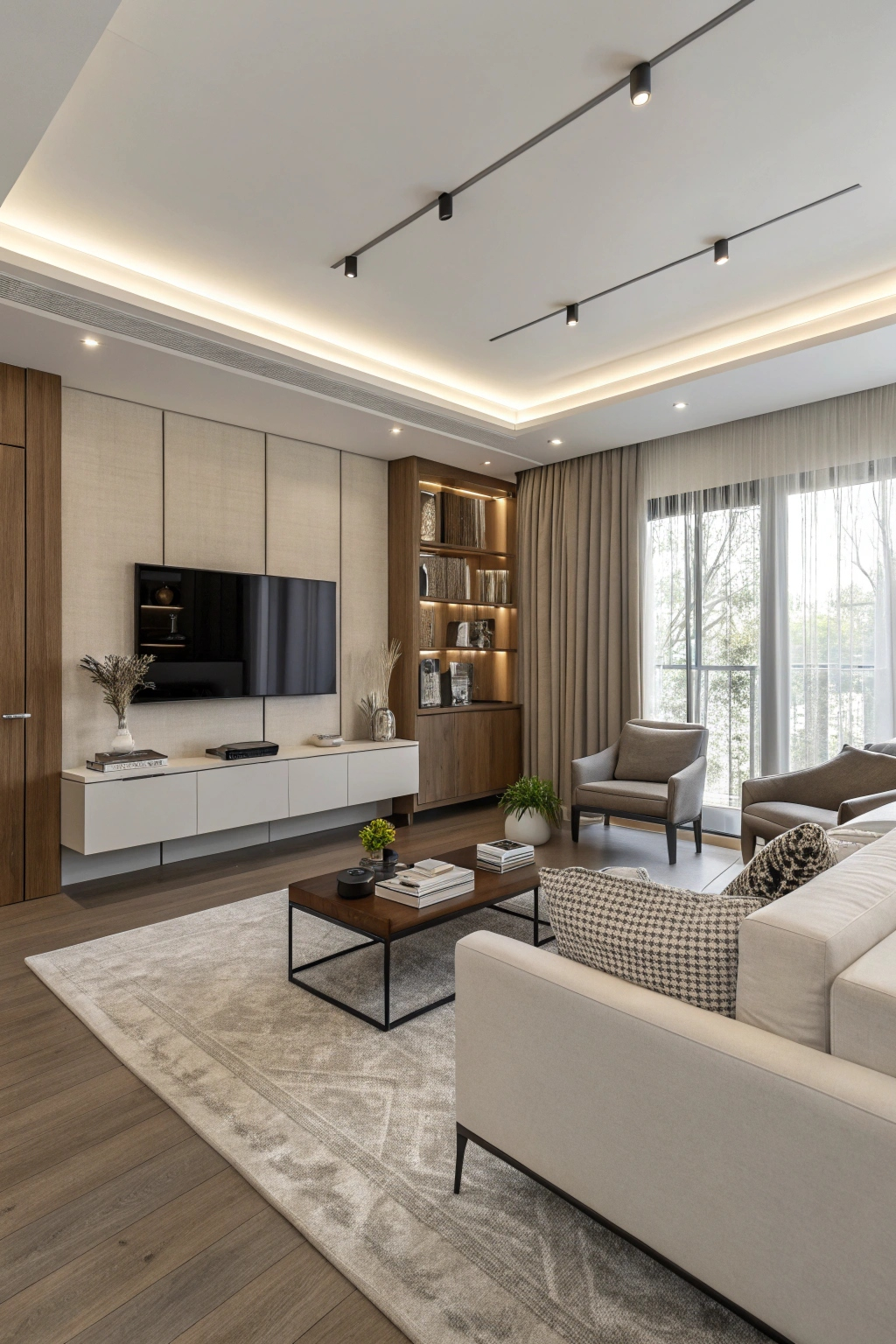 - Incorporate a wall-mounted TV for a sleek look.