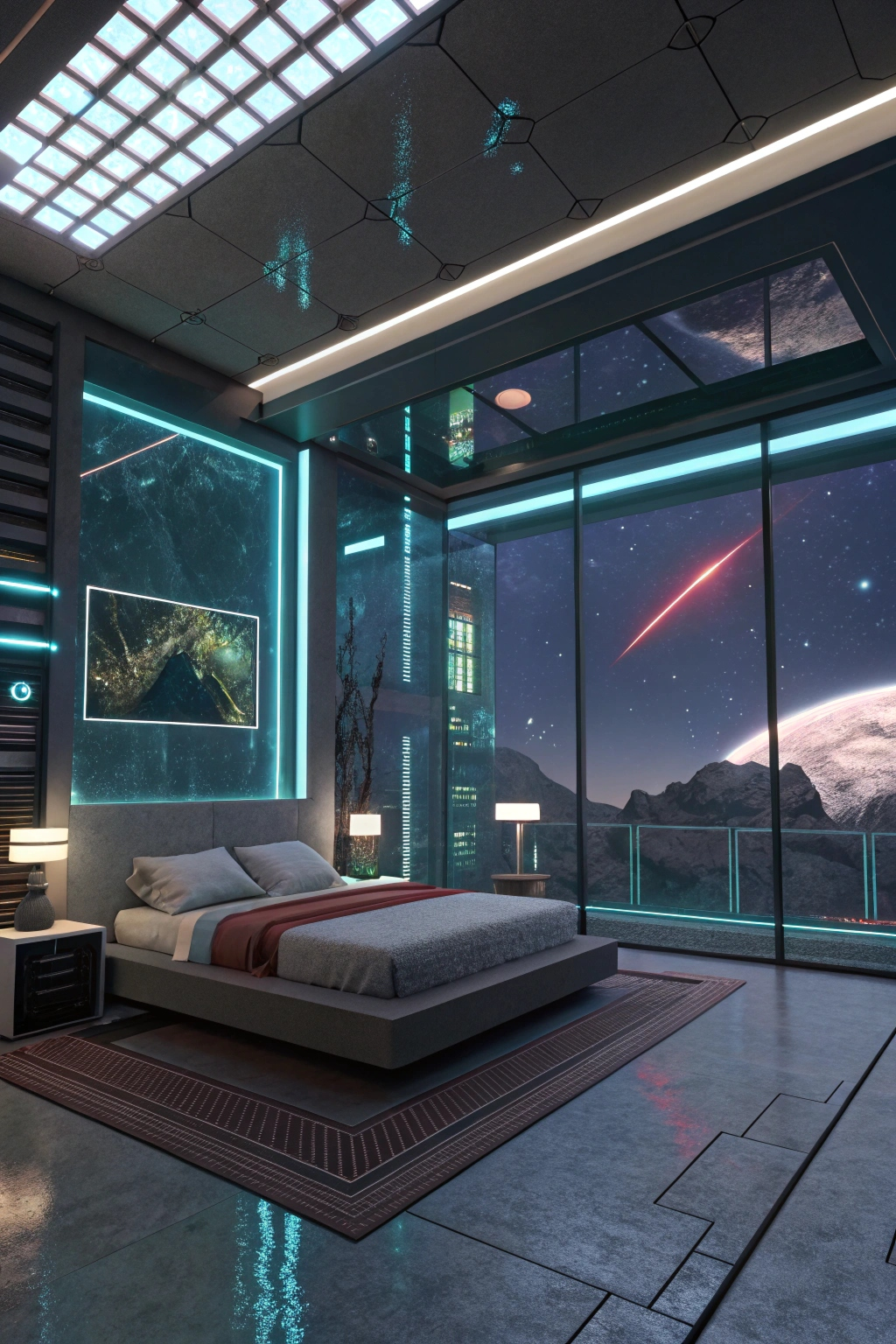 PinA Futuristic Sci-Fi Bedroom in Minecraft invites you to explore a world of sleek designs and high-tech gadgets. Use minimalist furniture and neon lighting to create an otherworldly atmosphere. Incorporate glass walls for a panoramic view of your virtual universe. Add element blocks like end rods and sea lanterns for an illuminated effect. Don't forget advanced technology, like redstone contraptions!