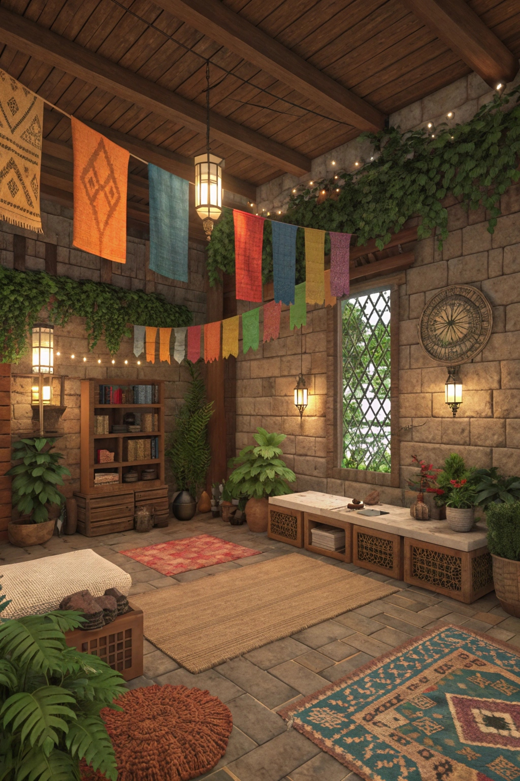 PinCreating a Bohemian Styled Sanctuary in Minecraft gives you the perfect space to express creativity and relaxation. Use warm, earthy tones for walls and furniture, complemented by cozy rugs and plenty of plants. Hang colorful banners or fabric for a laid-back vibe. Incorporate soft lighting with lanterns or glowstone, and don't forget to design a comfy seating area for unwinding after your adventures.