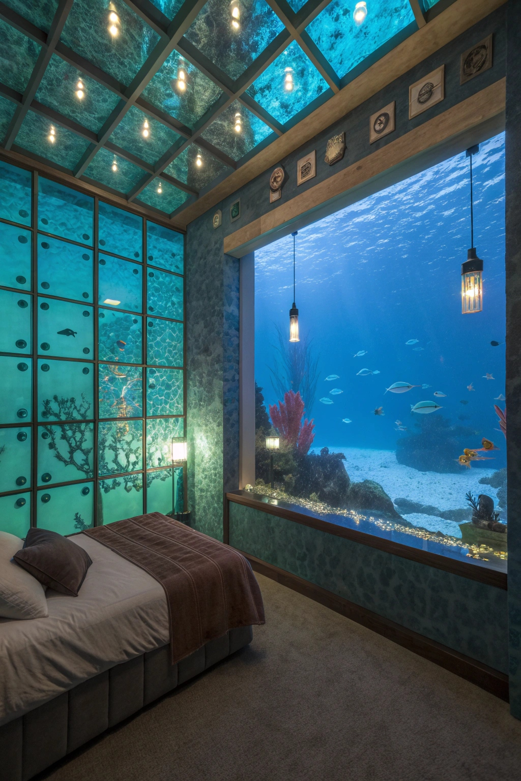 PinPlunge into the depths of creativity with an Underwater Adventure Room in Minecraft that transports you to a vibrant ocean domain. Craft walls from sea lanterns, and use glass blocks to create stunning underwater views. Decorate with coral, tropical fish, and seaweed to enhance the ambiance. Don't forget a cozy bed nestled in a shipwreck for that ultimate aquatic escape!