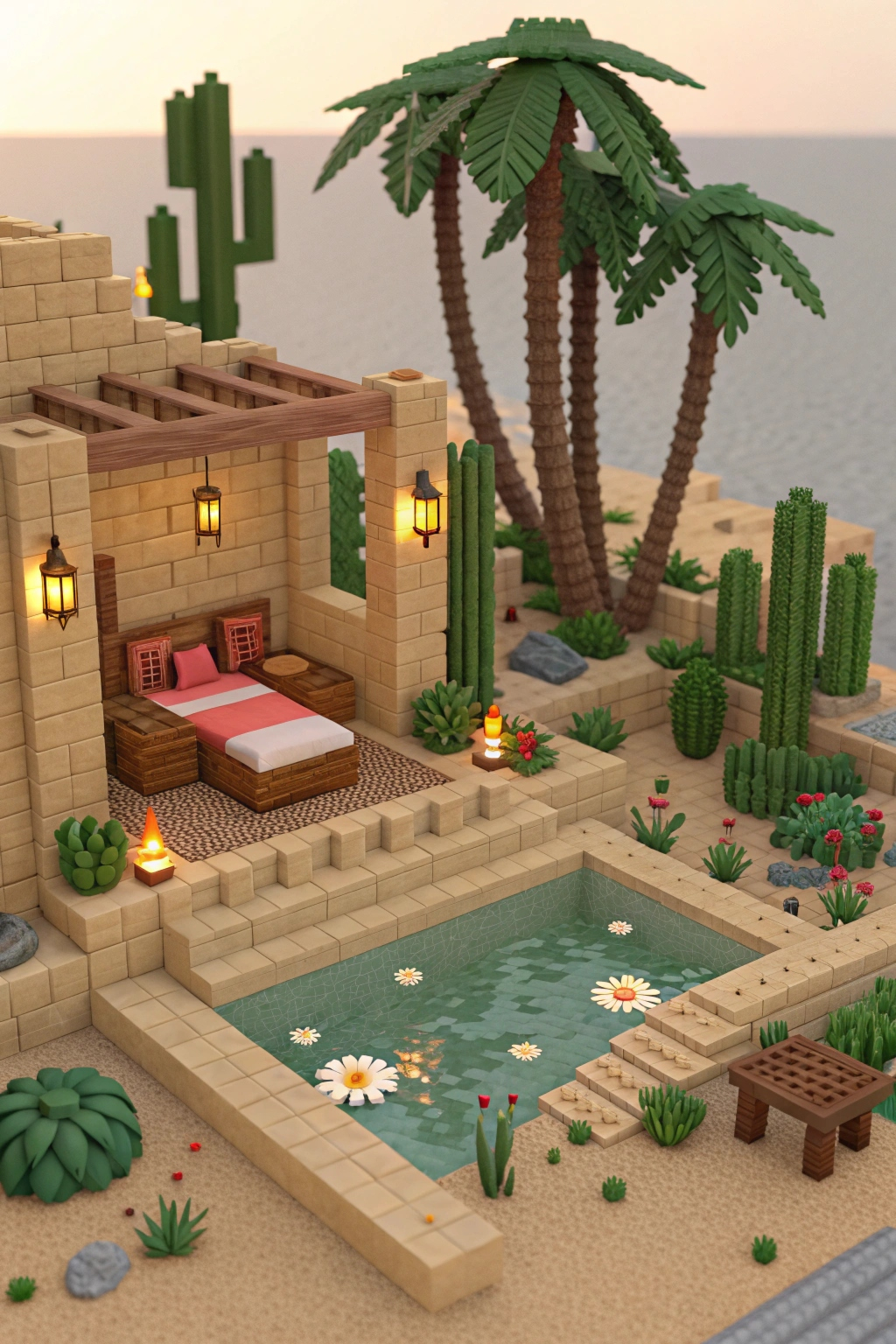 PinTaking inspiration from the serenity of nature, you can create a vibrant desert oasis escape right in your Minecraft bedroom. Incorporate sandy textures, cacti, and palm trees to capture the essence of a tranquil environment. Here are a few ideas to enhance your oasis: