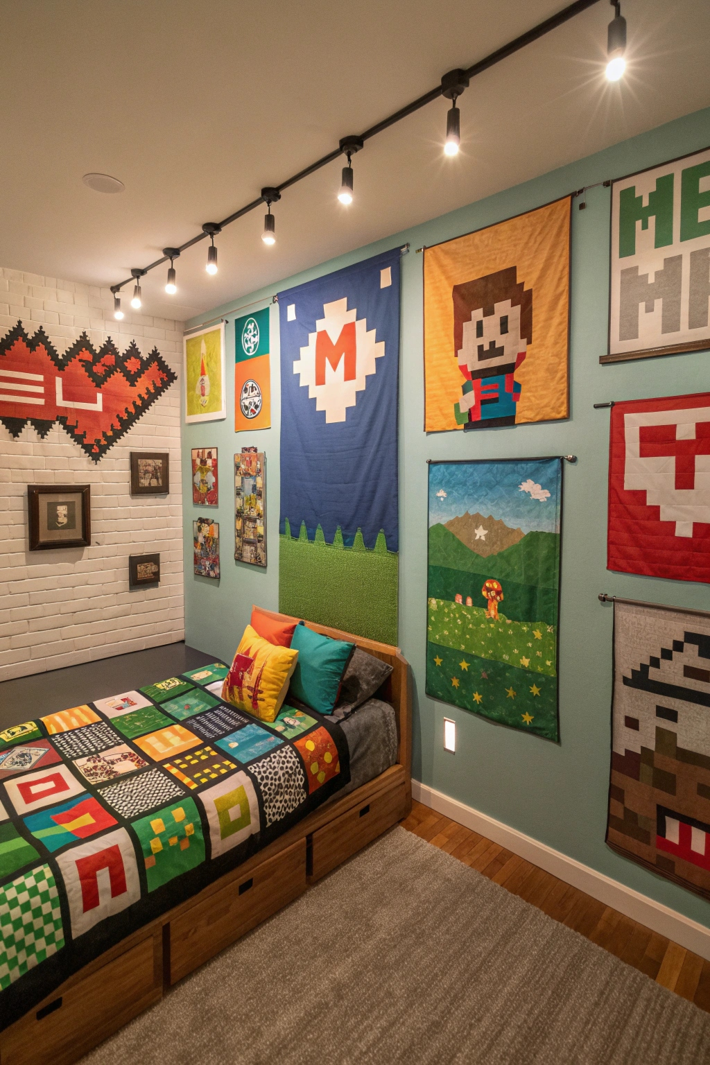 PinTransform your Minecraft bedroom into a vibrant Pixel Art Gallery that showcases your creativity and passion for blocky artwork. Choose your favorite characters and designs, then use wool, blocks, and banners to create stunning murals. Arrange them on your walls for maximum impact. Don't forget to add some lighting to highlight your masterpieces and create a cozy atmosphere in your pixel paradise.