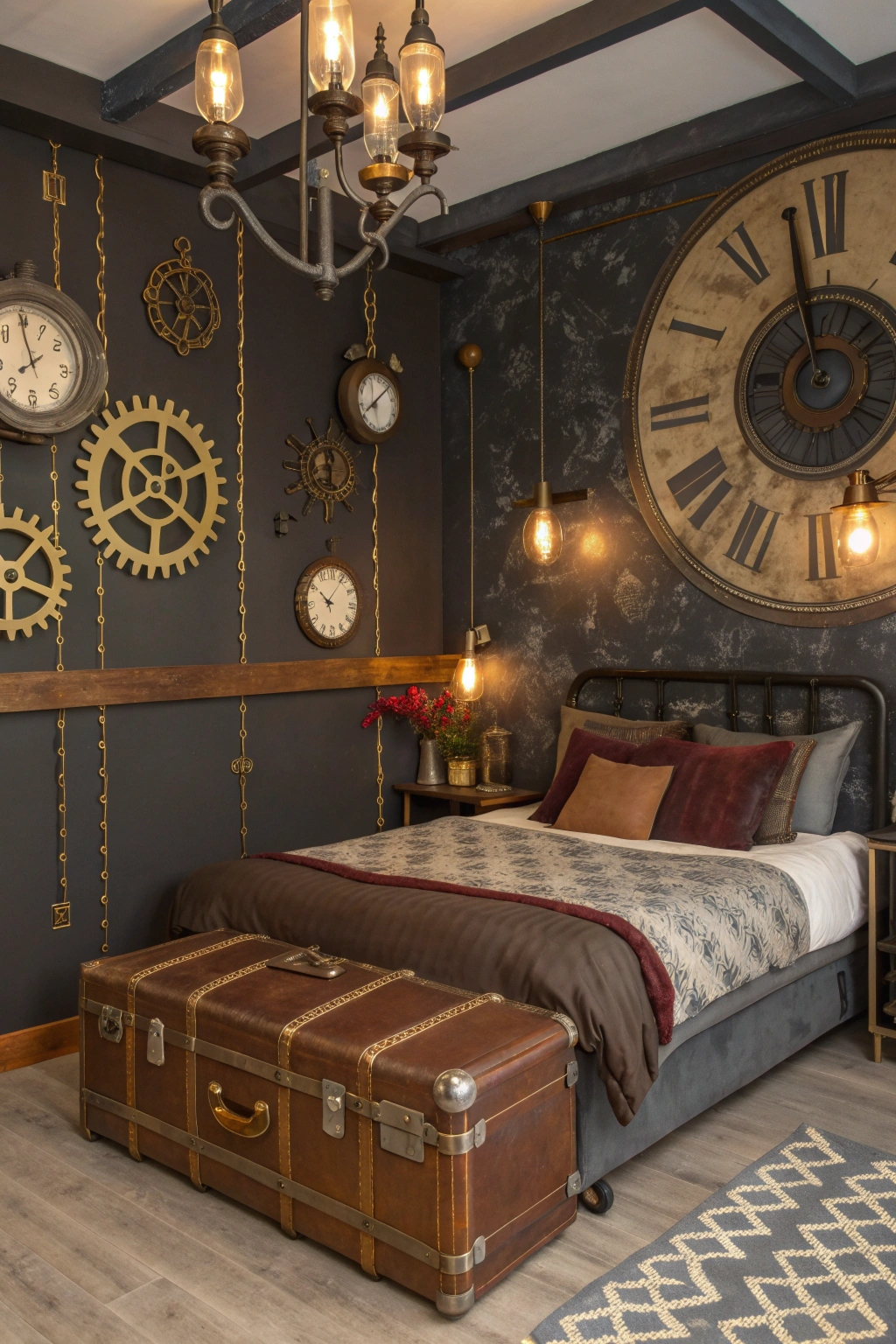 PinWith a touch of whimsy and nostalgia, the Vintage Steampunk Style blends industrial aesthetics with a fantastical charm. You can create an enchanting bedroom by incorporating gears, pipes, and vintage furniture. Choose a color palette of deep browns and brass tones, and include unique decor that echoes the era.