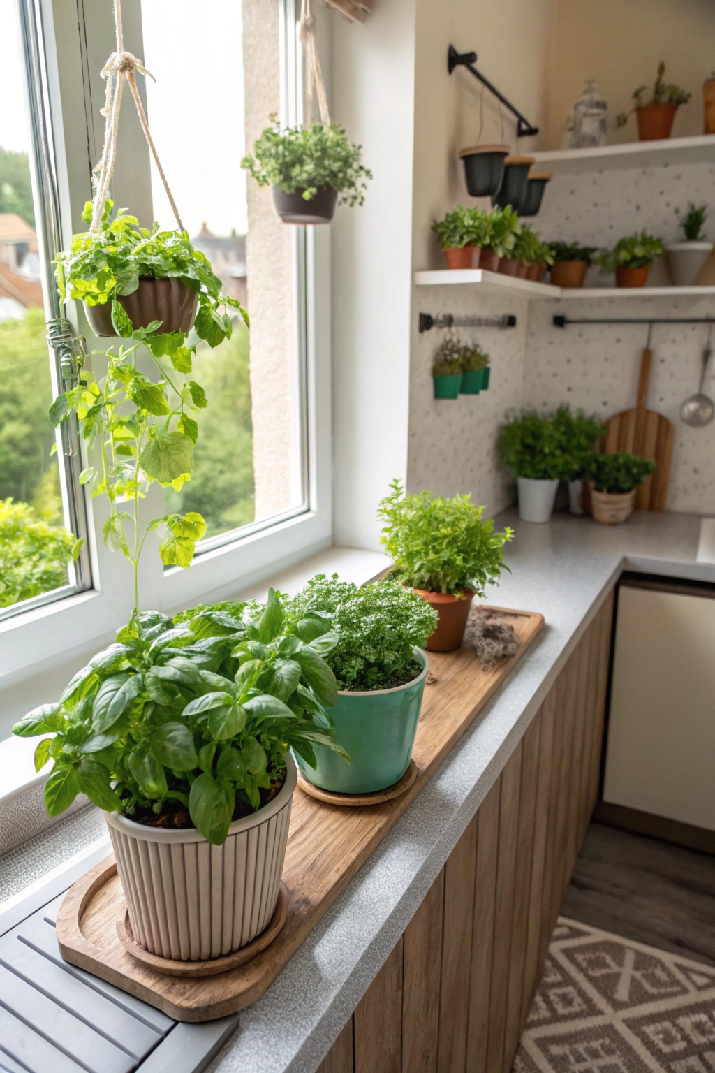 PinAdding a touch of greenery can instantly transform your mini kitchen into a more inviting space. Incorporate small potted herbs like basil or mint on your windowsill for freshness. Hanging plants or wall-mounted planters can save counter space while adding color. These lively touches not only enhance aesthetics but also improve air quality, making your cooking experience more enjoyable and rejuvenating.