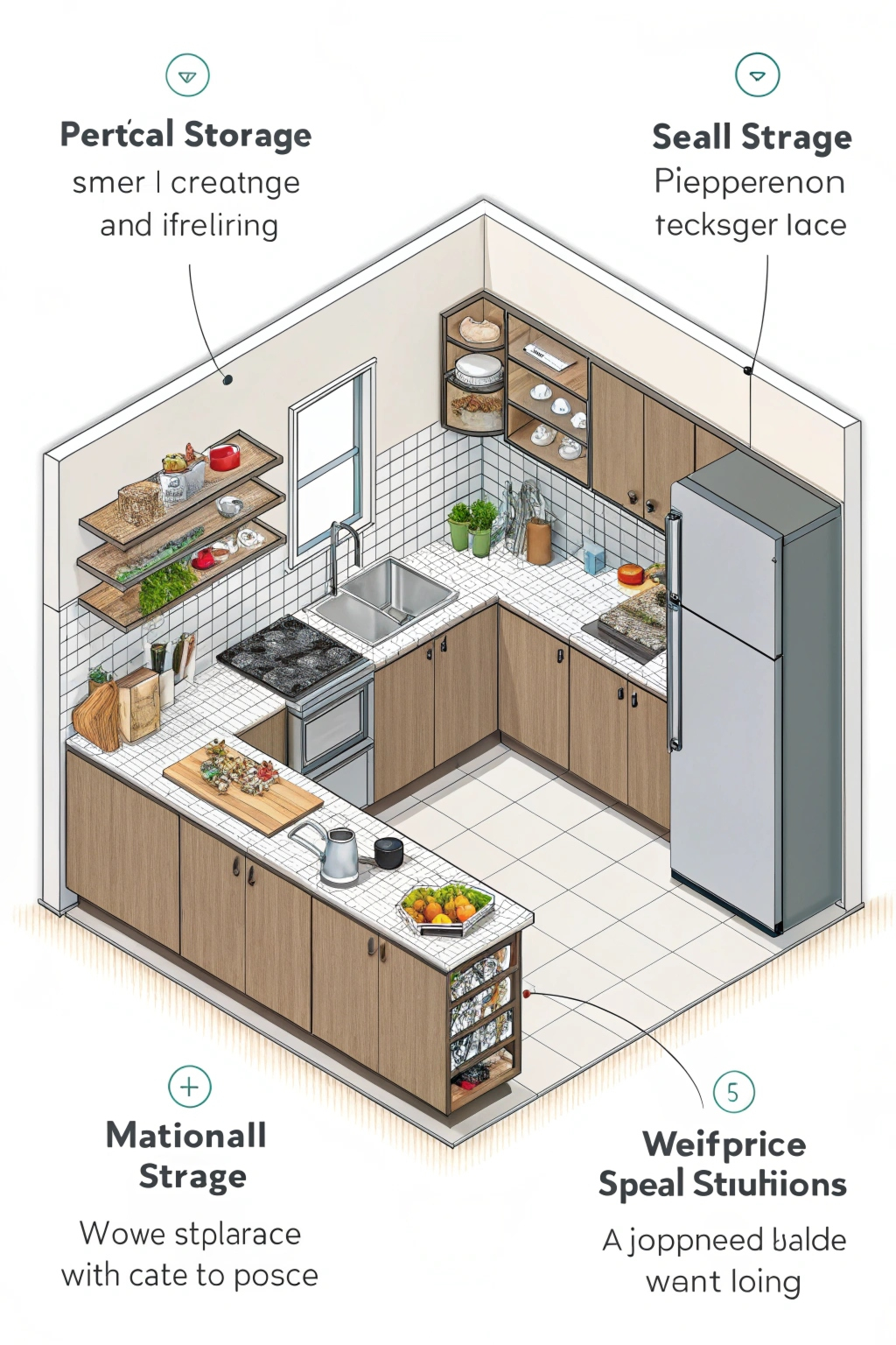 - Vertical Storage: Use shelves and cabinets to keep items off countertops.