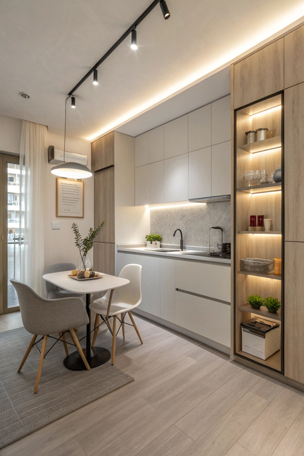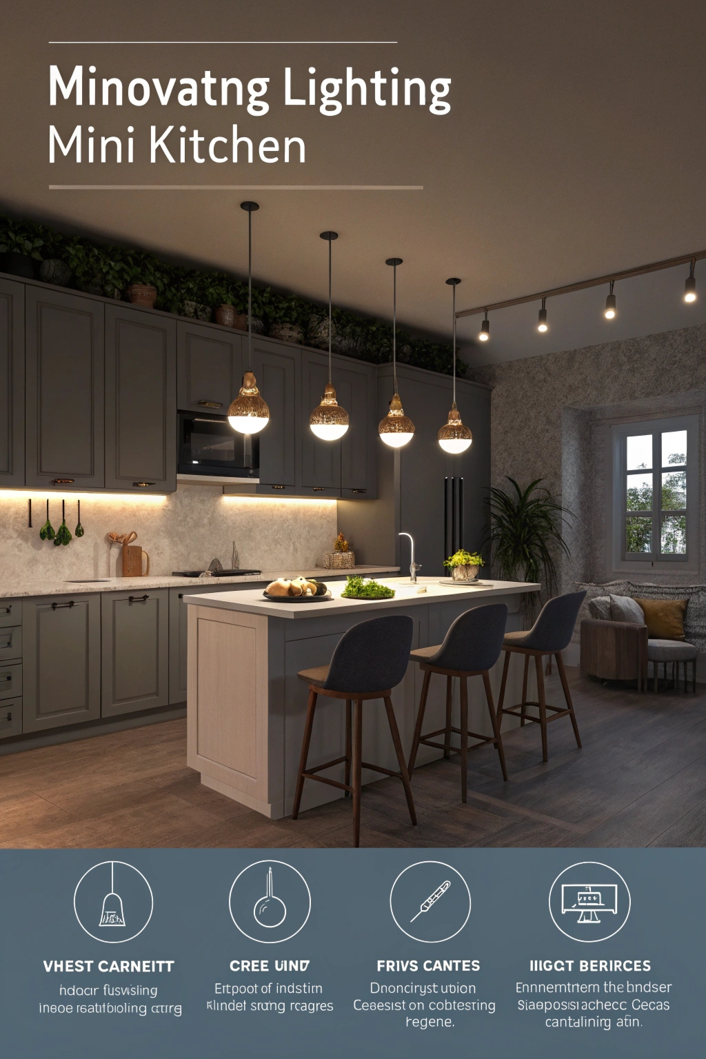 PinInnovative lighting can complement a minimalist design in a mini kitchen, creating a clean and uncluttered space. Focus on neutral colors and simple lines to maximize visual appeal. Choose multifunctional furniture, like a compact dining table, to save space. Keep countertops clear by utilizing vertical storage solutions, ensuring easy access to essentials while maintaining an airy vibe. Embrace simplicity for a serene environment.