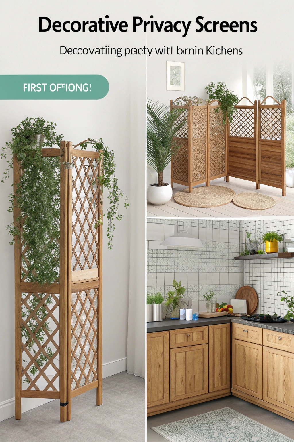 - Wooden slat screens for a rustic feel.