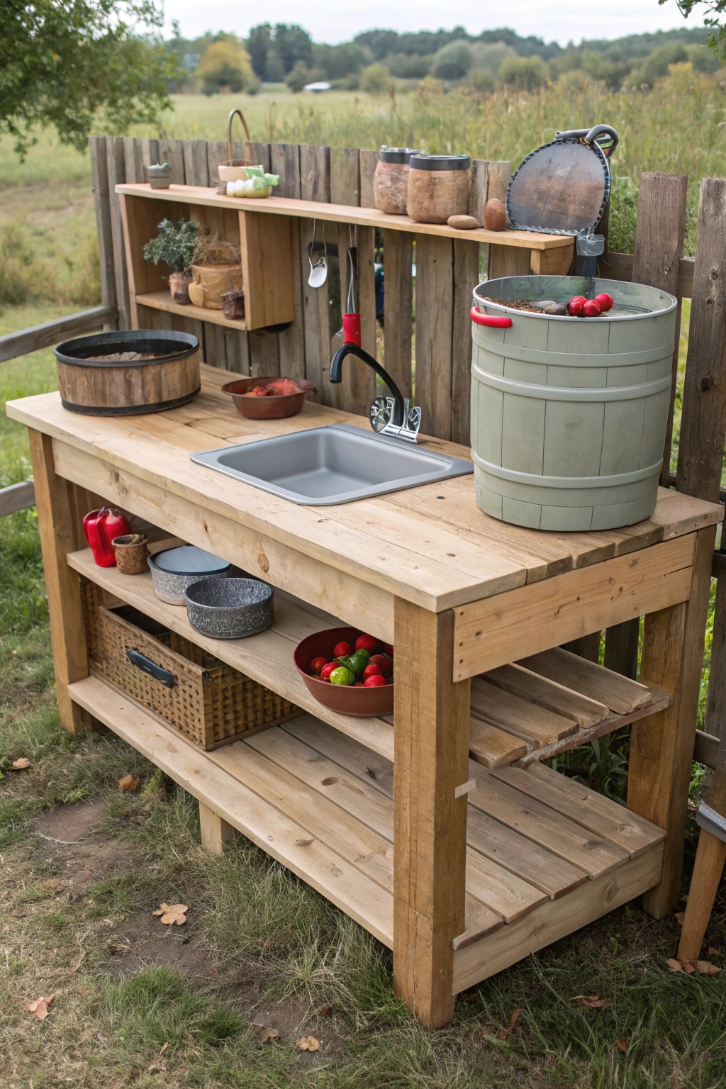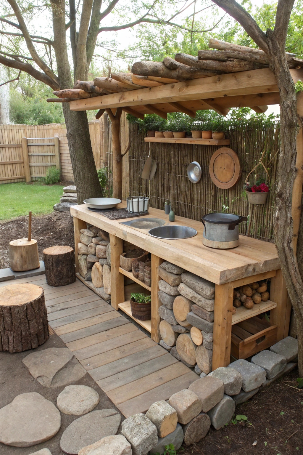 PinNatural stone and wood can transform a mud kitchen into a rustic haven for imaginative play. You can create an inviting space for your kids by using natural materials. Consider these elements: