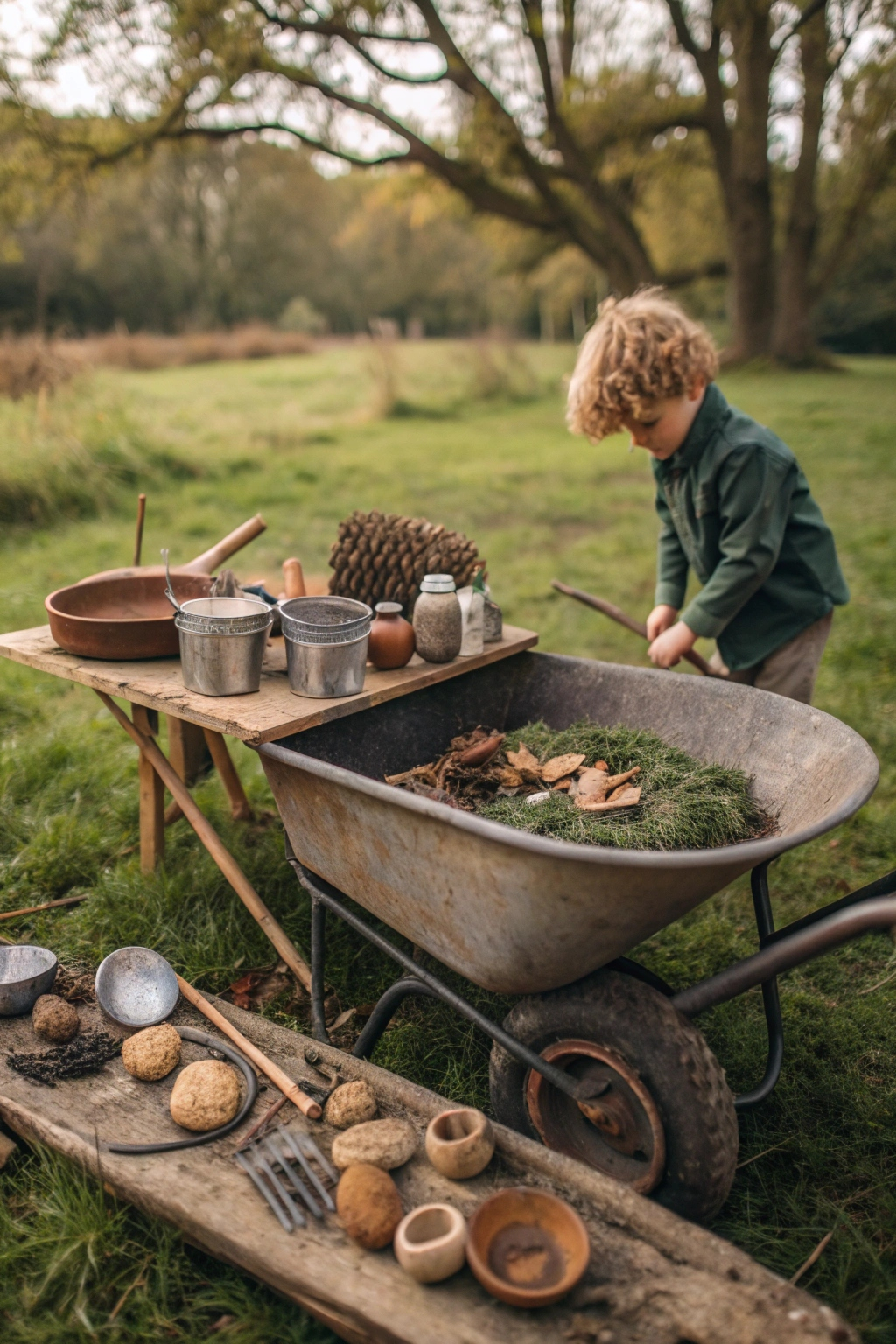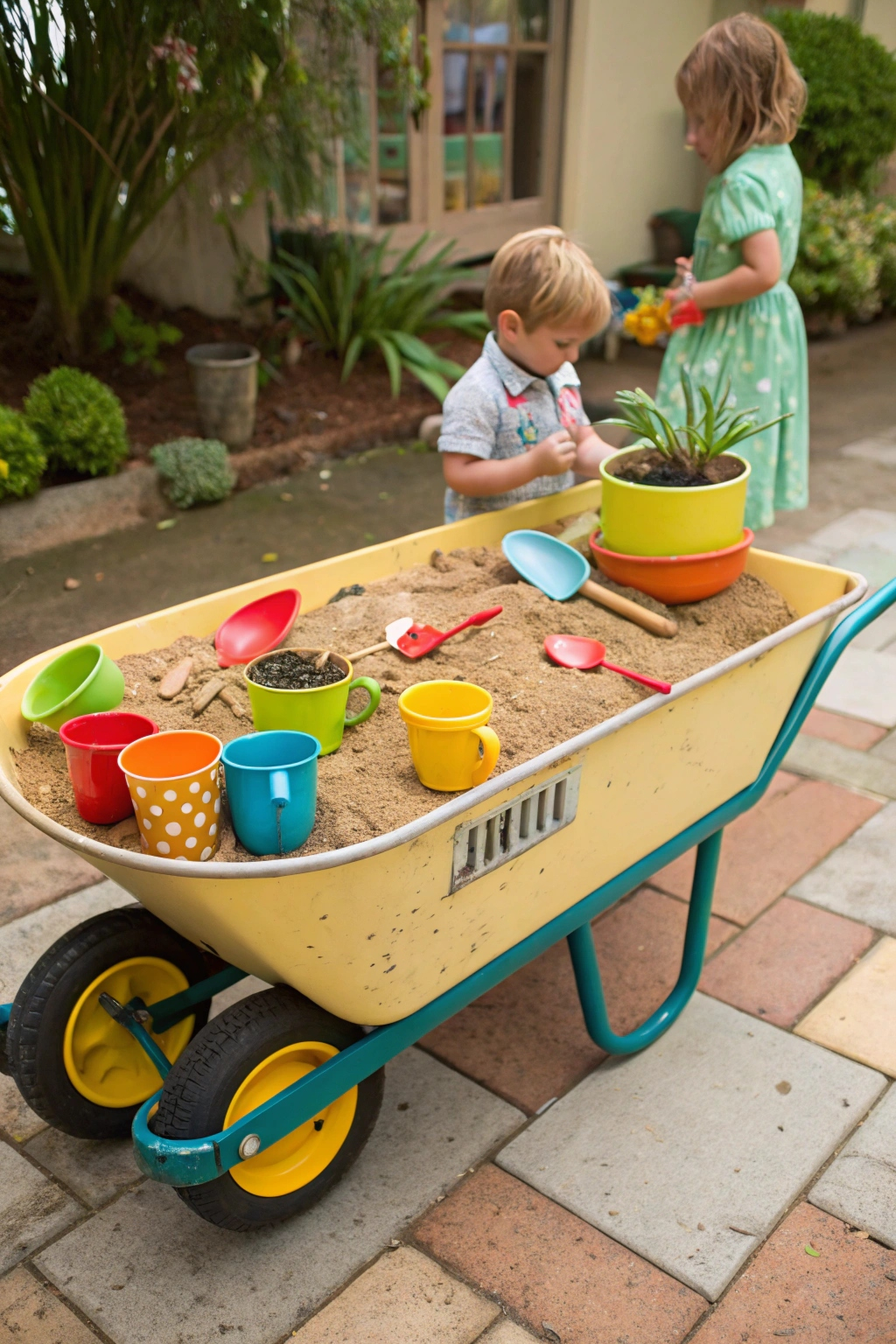 PinA wheelbarrow mud play station adds an exciting element to your child's outdoor adventures, inviting endless opportunities for imaginative play. You can fill it with tools and materials that spark creativity, such as: