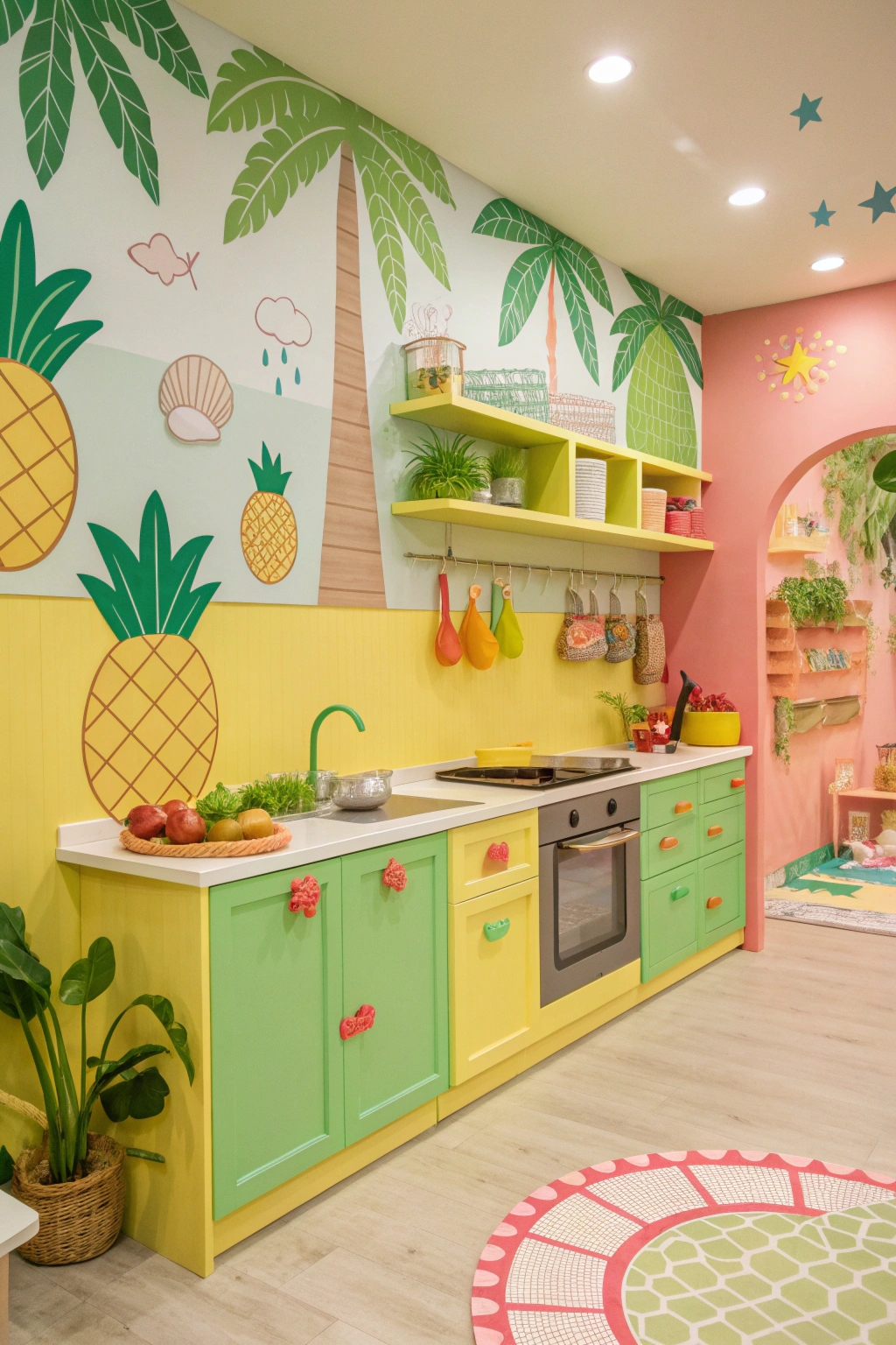 PinCreating a tropical theme kitchen for your kids can elevate their outdoor playtime experience while sparking their imagination. Use bright colors like green, yellow, and pink to paint the kitchen. Incorporate beach-themed decorations like seashells or palm leaves. You can add tropical plants around the area for realism, and provide fun utensils shaped like fruits to enhance their creative cooking adventures!