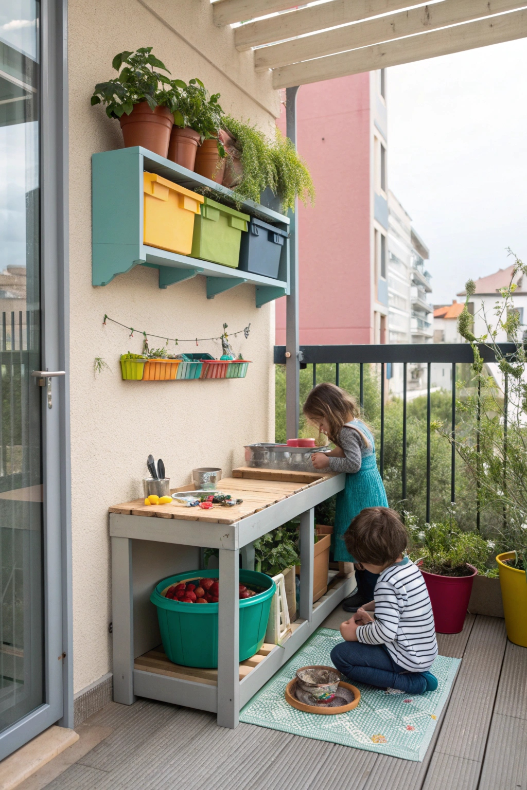 PinFor families with limited outdoor space, creating a compact balcony mud kitchen can turn a small area into a vibrant play zone. You can make the most of your balcony by including: