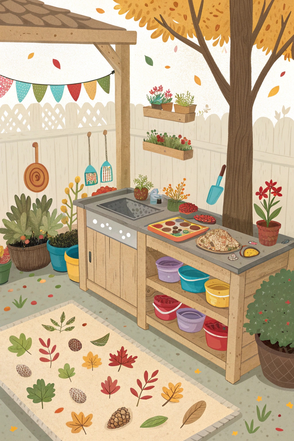 PinTransforming your mud kitchen for different seasons not only keeps the space fresh but also fuels kids' imaginations. Here are some fun decoration ideas you can try:
