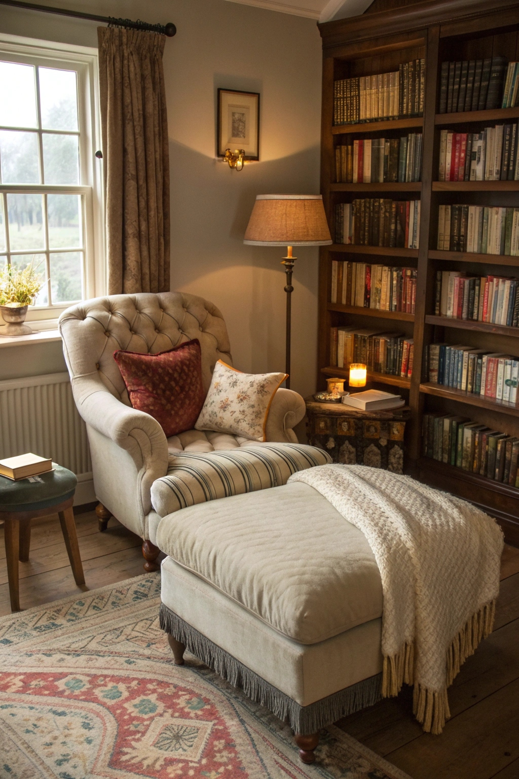 PinA cozy reading nook can become your sanctuary within a Victorian living room, inviting you to escape into the pages of your favorite books. To create the perfect space, consider these elements: