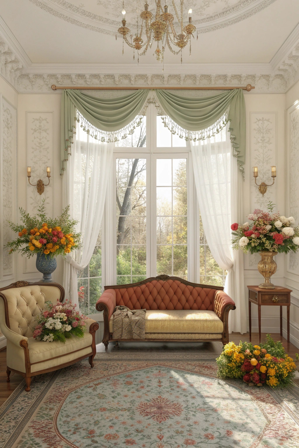 PinEnhancing your Victorian-inspired living room with seasonal decor can create a warm and welcoming atmosphere that reflects the changing times of the year. Swap out heavy drapes for lighter fabrics in spring and summer, and add rich, warm throws in fall and winter. Use seasonal floral arrangements and festive accents to evoke the spirit of each season while maintaining that classic Victorian charm.
