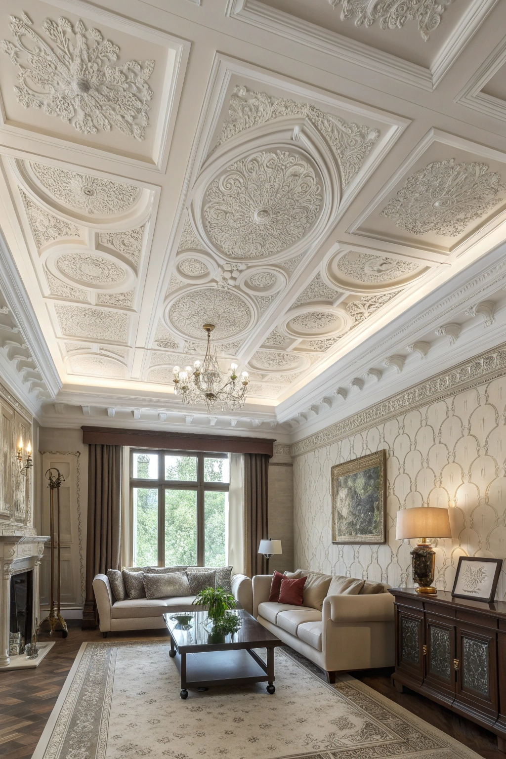 PinOften, decorative ceiling treatments elevate the sophistication of a Victorian living room, transforming it into a stunning visual experience. Consider these enchanting options: