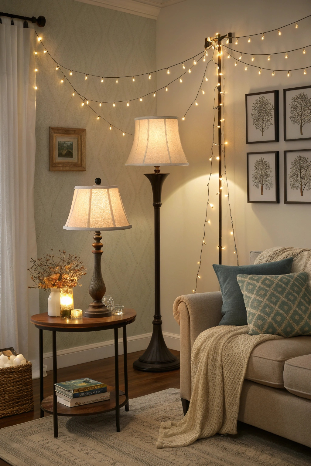 - String lights for a cozy, playful touch.