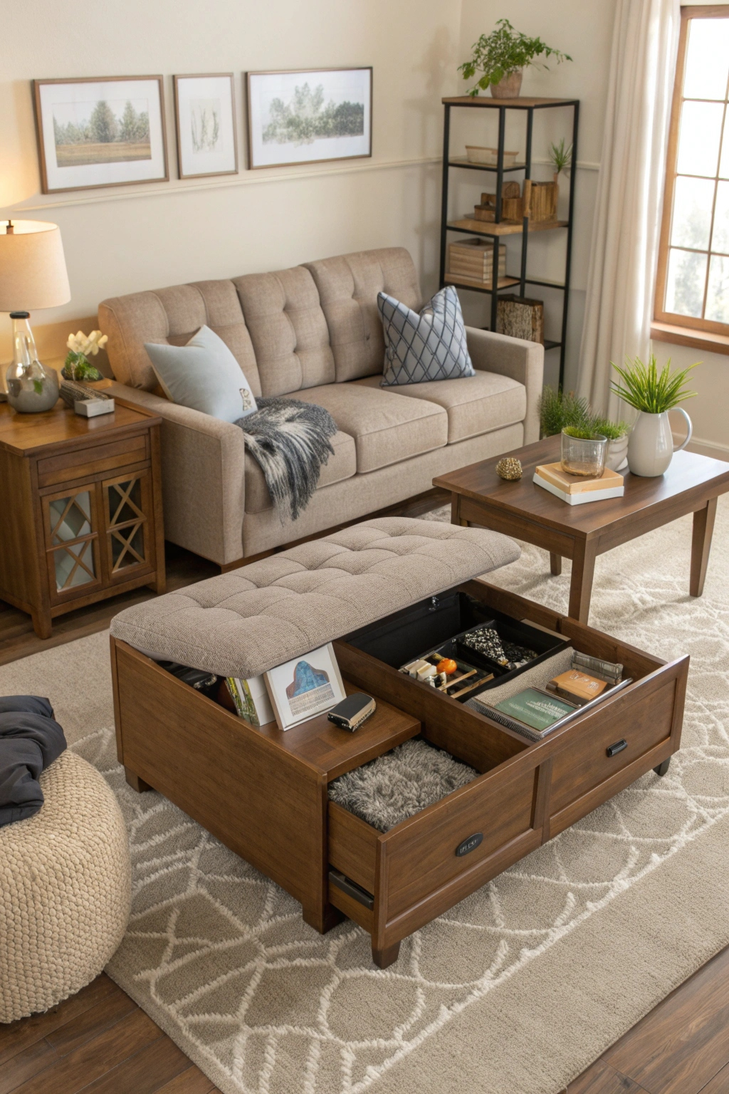 - Storage ottomans that double as footrests.