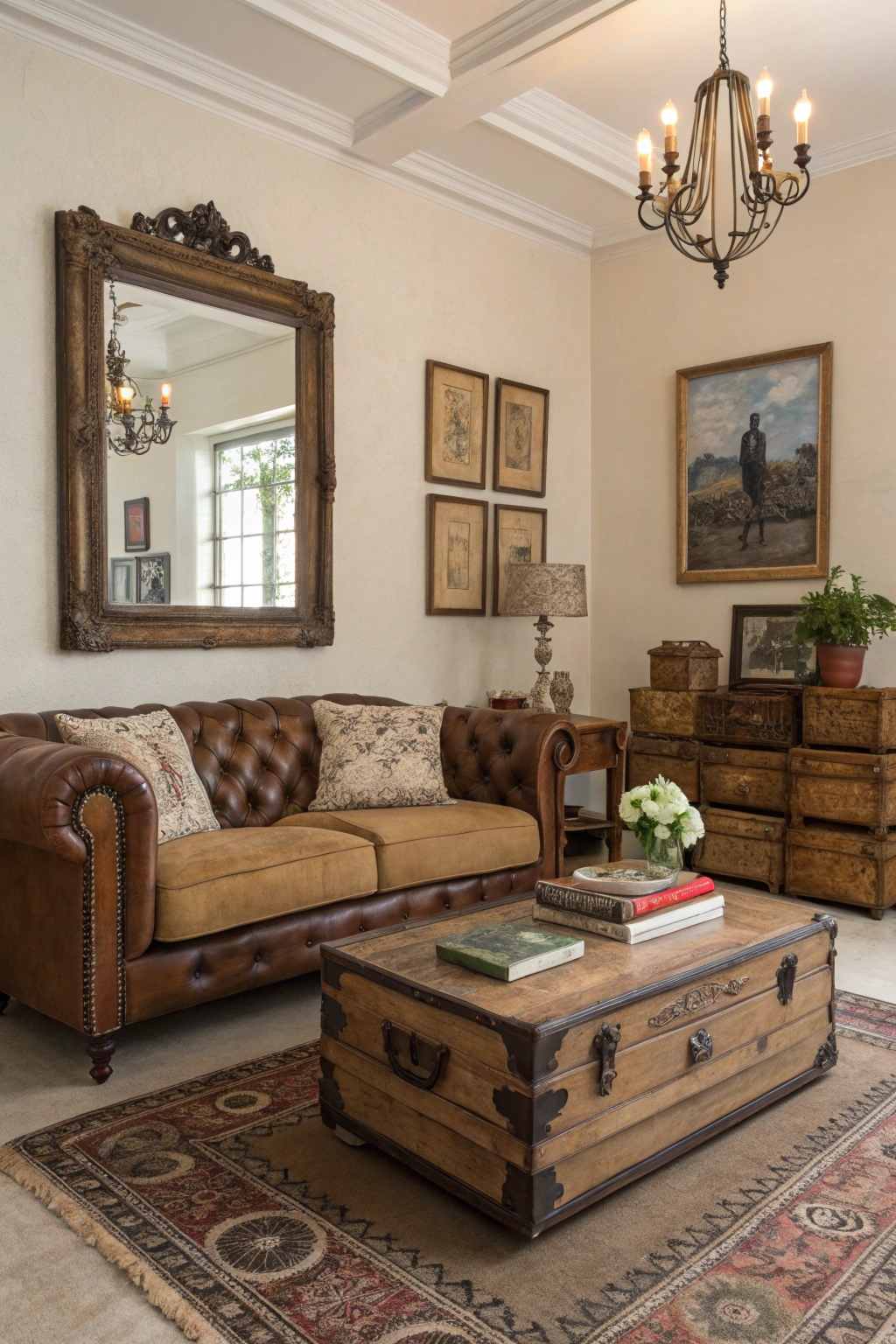 - Antique mirrors to reflect light and create depth.